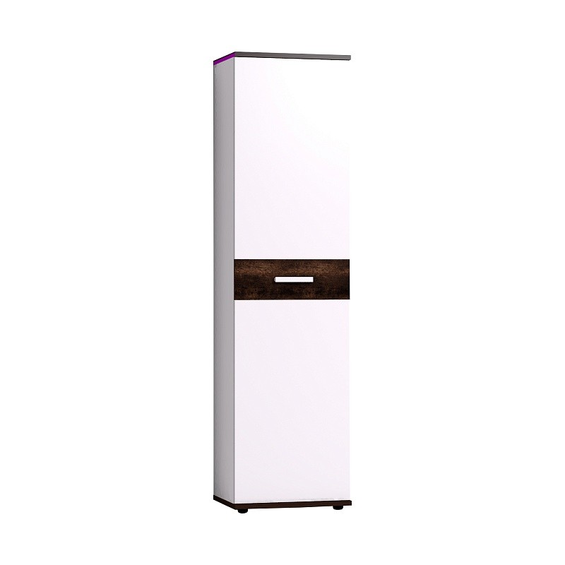 Распашной шкаф для одежды и белья комплектуется выдвижной штангой для одежды. При желании можно докупить и установить модульНорвуд 72 Полки(в комплекте 3 полки) в заранее просверленные варианты присадки. Верхняя и нижняя детали шкафа толщиной 22 мм в декоре Орех Шоколадный и брашированная вставка - яркие акценты простого белого модуля.