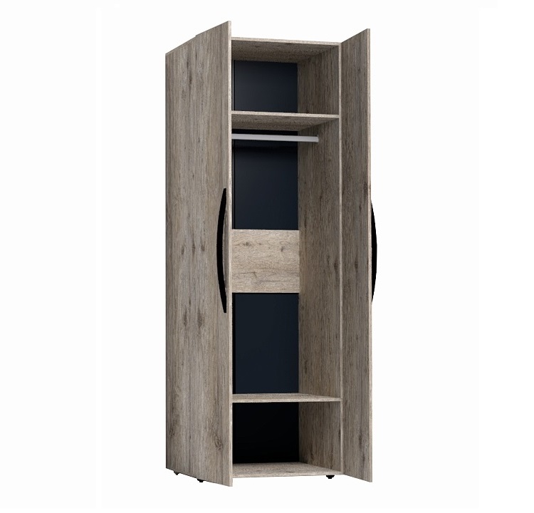 Распашной шкаф для одежды разделяется на отдельно продающиеся элементы: корпус и два фасада - Зеркало и Стандарт. Двухстворчатый шкаф для одежды 54 прекрасно подойдет для хранения одежды и белья в спальне. Гладкие фасады и натуральный декор шкафа привнесут в комнату особый уют и теплоту, а металлические ручки-скобки вместе с 2 мм кромкой ПВХ обеспечат высокую надежность изделия. Распашной шкаф комплектуется стационарной штангой длиной 757 мм, на которой можно разместить до 10 плечиков с верхней одеждой, а также двумя полками - сверху и снизу. Регулируемые опоры компенсируют незначительные неровности пола.