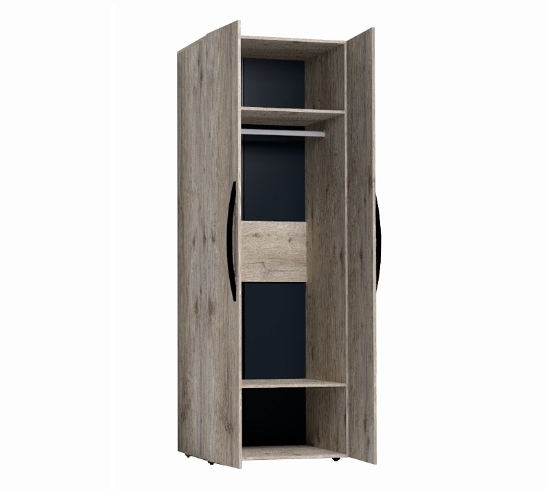 Распашной шкаф для одежды разделяется на отдельно продающиеся элементы: корпус и два фасада - Зеркало и Стандарт. Двухстворчатый шкаф для одежды 54 прекрасно подойдет для хранения одежды и белья в спальне. Гладкие фасады и натуральный декор шкафа привнесут в комнату особый уют и теплоту, а металлические ручки-скобки вместе с 2 мм кромкой ПВХ обеспечат высокую надежность изделия. Распашной шкаф комплектуется стационарной штангой длиной 757 мм, на которой можно разместить до 10 плечиков с верхней одеждой, а также двумя полками - сверху и снизу. Регулируемые опоры компенсируют незначительные неровности пола.