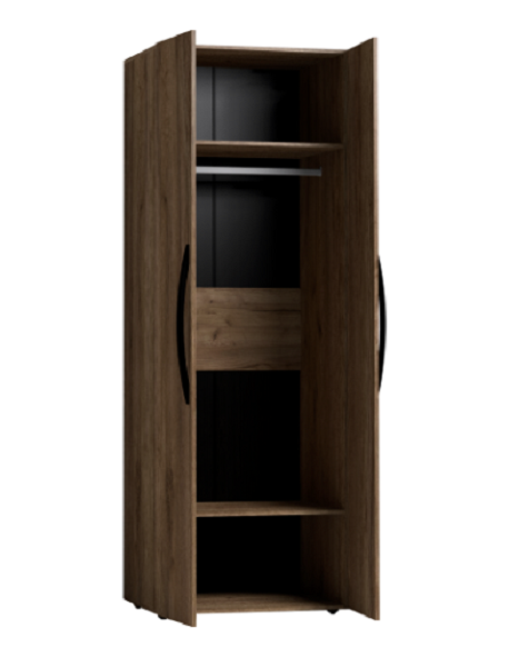 Распашной шкаф для одежды разделяется на отдельно продающиеся элементы: корпус и два фасада - Зеркало и Стандарт. Двухстворчатый шкаф для одежды 54 прекрасно подойдет для хранения одежды и белья в спальне. Гладкие фасады и натуральный декор шкафа привнесут в комнату особый уют и теплоту, а металлические ручки-скобки вместе с 2 мм кромкой ПВХ обеспечат высокую надежность изделия. Распашной шкаф комплектуется стационарной штангой длиной 757 мм, на которой можно разместить до 10 плечиков с верхней одеждой, а также двумя полками - сверху и снизу. Регулируемые опоры компенсируют незначительные неровности пола.