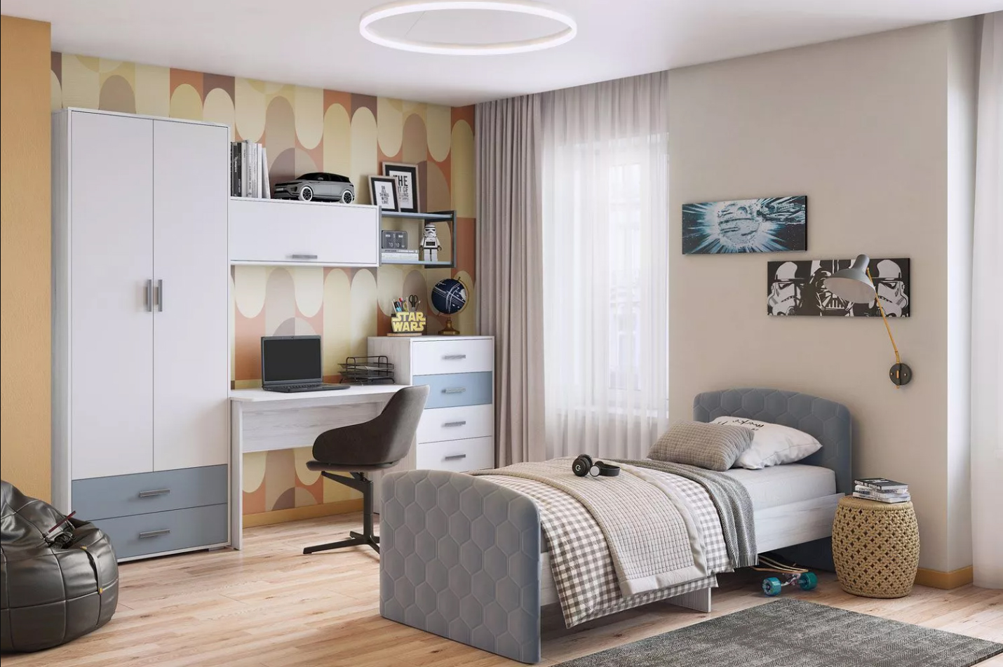 Двухдверный шкаф для одежды из коллекции Стич - универсальный вариант организации хранения в детской комнате мальчика. Благодаря разноплановому наполнению модуля всем вещам маленького героя хватит места. Продольные штанги пригодятся для одежды на плечиках, а комплект полок - для вещей в сложенном виде. Два вместительных ящика на шариковых направляющих Вы можете использовать для деликатных вещей, постельного белья и аксессуаров.