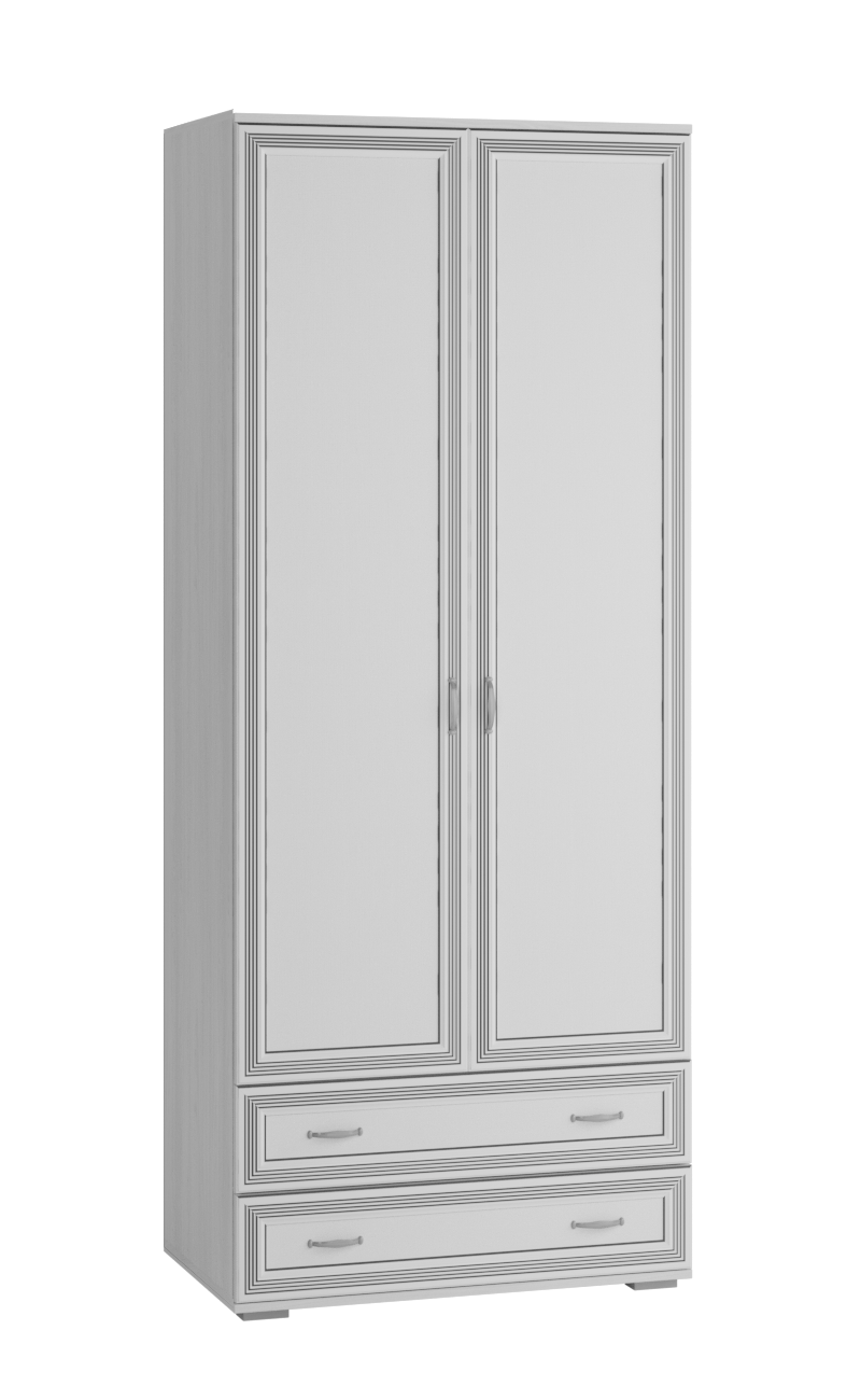 Двустворчатый шкаф для одежды и белья Ливорно. Оснащен штангой и двумя выдвижными ящиками в нижней части.Материал фасада:Рамочный профиль из МДФ, 3D-вставка из МДФ.Материал корпуса:ЛДСП.Установлены петли с доводчиками для бесшумного закрывания и шариковые направляющие полного выдвижения.Фурнитура:«Старая бронза» 96 мм.