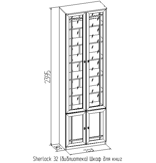 Книжный шкаф Sherlock 32 по достоинству оценят любители печатной литературы и владельцы большого количества книг и журналов. Это высокая распашная модель для комнаты высотой не менее 240 см. Шкаф комплектуется регулируемыми по высоте полками: для этого необходимо установить полкодержатели в подготовленные отверстия.Максимально допустимая нагрузка на каждую полку составляет 13 кг. Благодаря комбинированномустеклом фасаду модуль не выглядит громоздким. Тонированноестекло защитит все Ваши книги и другие вещи, которые Вы решите хранить в шкафу, от вредного воздействия солнечных лучей и загрязнений. Модель прекрасно сочетается со скошенными шкафами Sherlock 34 и 35.
