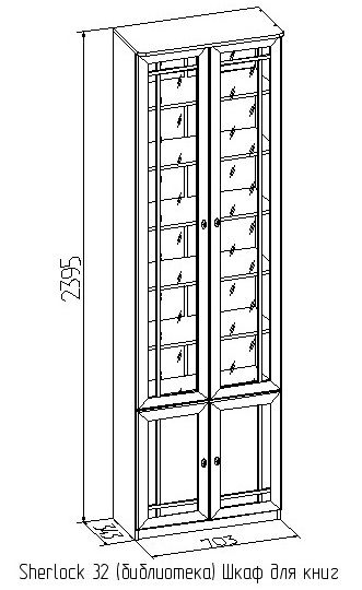 Книжный шкаф Sherlock 32 по достоинству оценят любители печатной литературы и владельцы большого количества книг и журналов. Это высокая распашная модель для комнаты высотой не менее 240 см. Шкаф комплектуется регулируемыми по высоте полками: для этого необходимо установить полкодержатели в подготовленные отверстия.Максимально допустимая нагрузка на каждую полку составляет 13 кг. Благодаря комбинированномустеклом фасаду модуль не выглядит громоздким. Тонированноестекло защитит все Ваши книги и другие вещи, которые Вы решите хранить в шкафу, от вредного воздействия солнечных лучей и загрязнений. Модель прекрасно сочетается со скошенными шкафами Sherlock 34 и 35.
