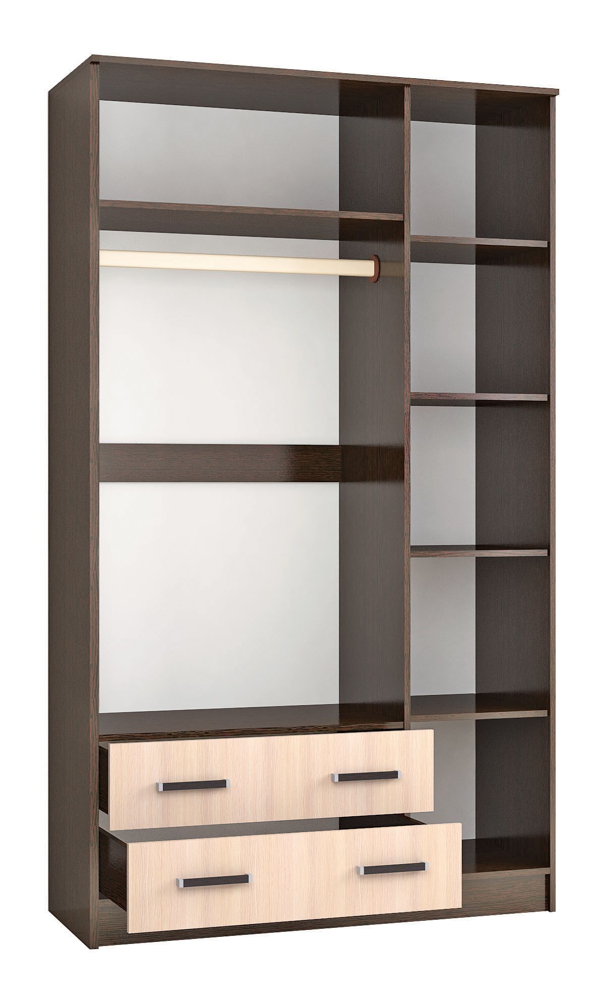 Компактный, но вместительный шкаф комбинированный Лагуна позволит разместить белье, одежду и аксессуары. Оригинальный дизайн и лаконичные формы дополнят интерьер спальни, гостиной или прихожей.