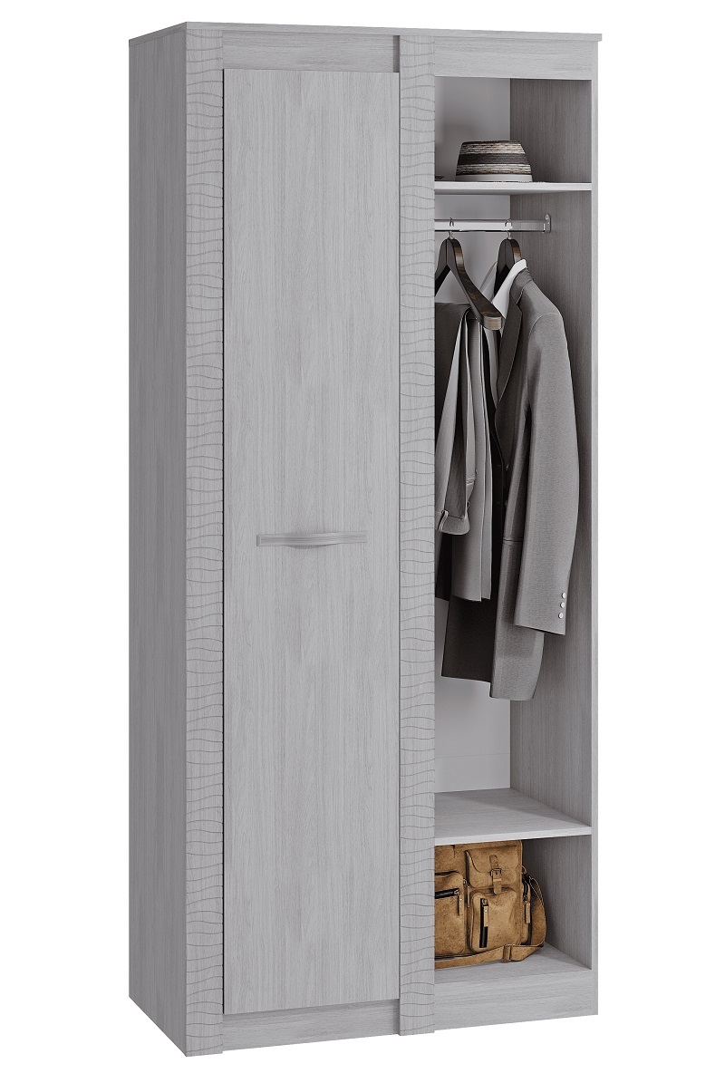 Шкаф для одежды с продольной штангой и полками. Внимание!Обратите внимание: при установке шкафа углового "Монако" ШК-39 рядом с примыкающим модулем необходимо сделать отступ 110 мм.