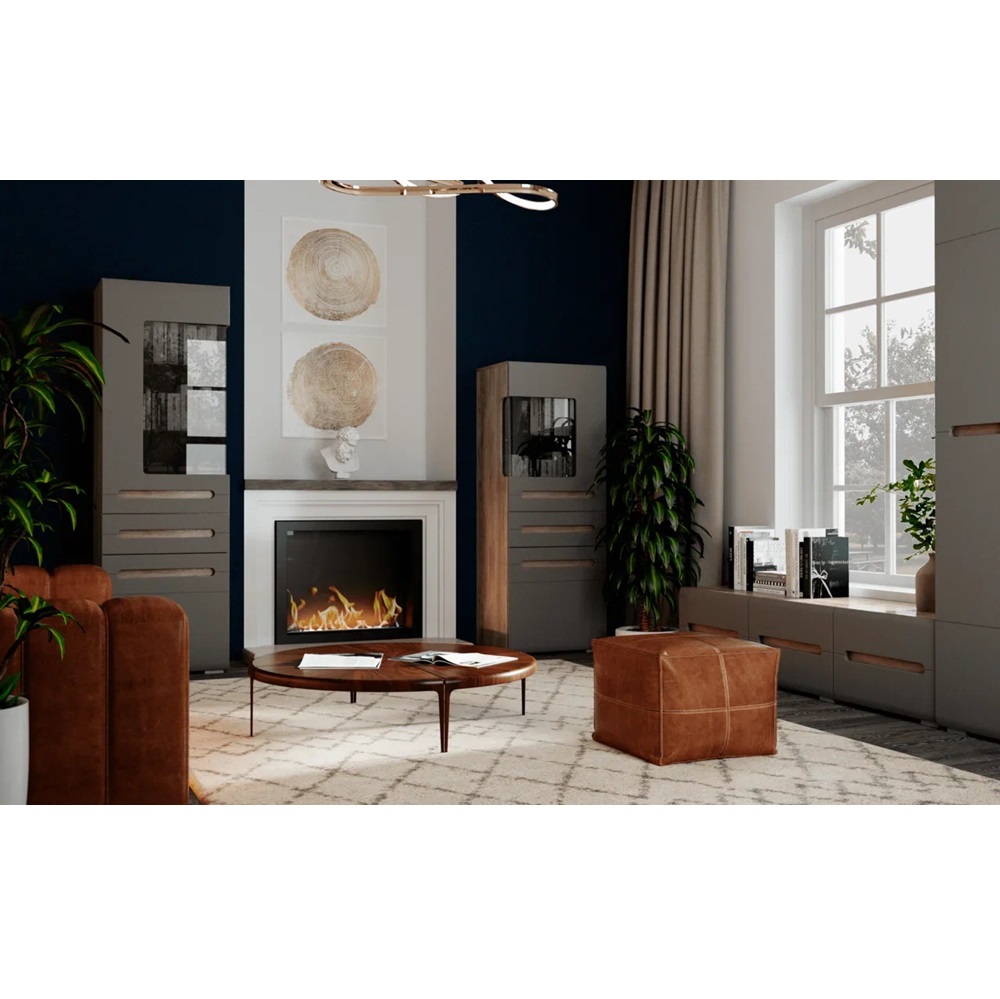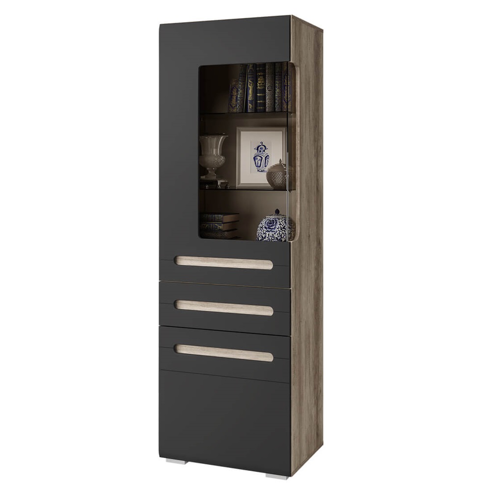 Шкаф распашной из серии Наоми – красивое решение для современного интерьера. Он прекрасно будет смотреться в вашей гостиной. В нем можно разместить предметы декора, посуду, книги и другие вещи. Модель оснащена распашными дверцами и выдвижным ящиком на роликовых направляющих. Фасады изготовлены из МДФ темно-серого цвета. В верхнюю створку вставлено тонированное стекло, что придает модели легкости и стиля. Высокое качество по доступной цене – это шкаф распашной Наоми ШК-23 F24
