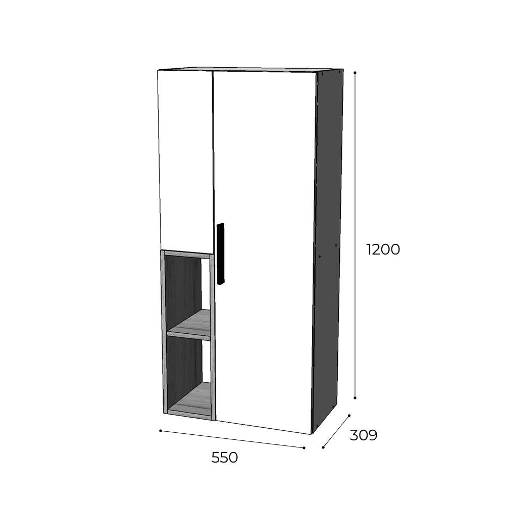 Шкаф-пенал настенный Альберо несмотря на свои размеры, очень вместительный, он позволяет хранить множество вещей, таких как одежда, книги, посуда и т.д. Оригинальное конструктивное решение с контрастной отделкой насыщенный «Графит серый» и белый с тиснением «Древесные поры».