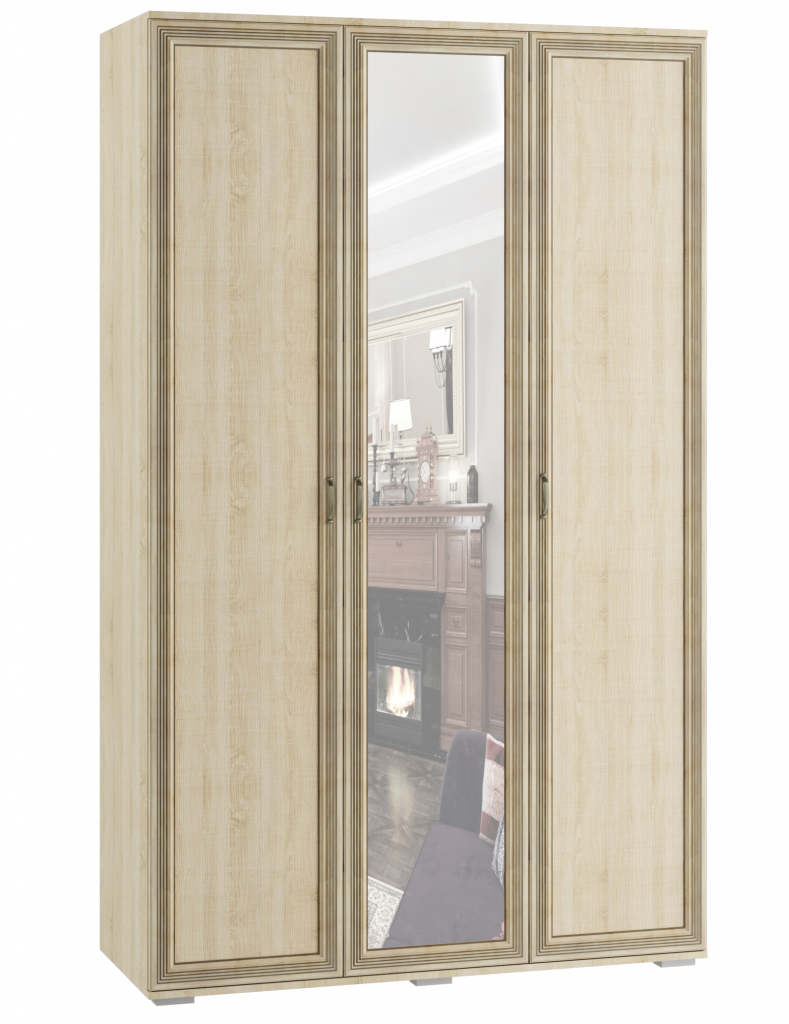 Трехстворчатый шкаф для одежды и белья Ливорно. Оснащен штангой и зеркалом в центральной частидля организации гардеробной зоны.Материал фасада:Рамочный профиль из МДФ, 3D-вставка из МДФ.Материал корпуса:ЛДСП.Установлены петли с доводчиками для бесшумного закрывания и шариковые направляющие полного выдвижения.Фурнитура:«Старая бронза» 96 мм