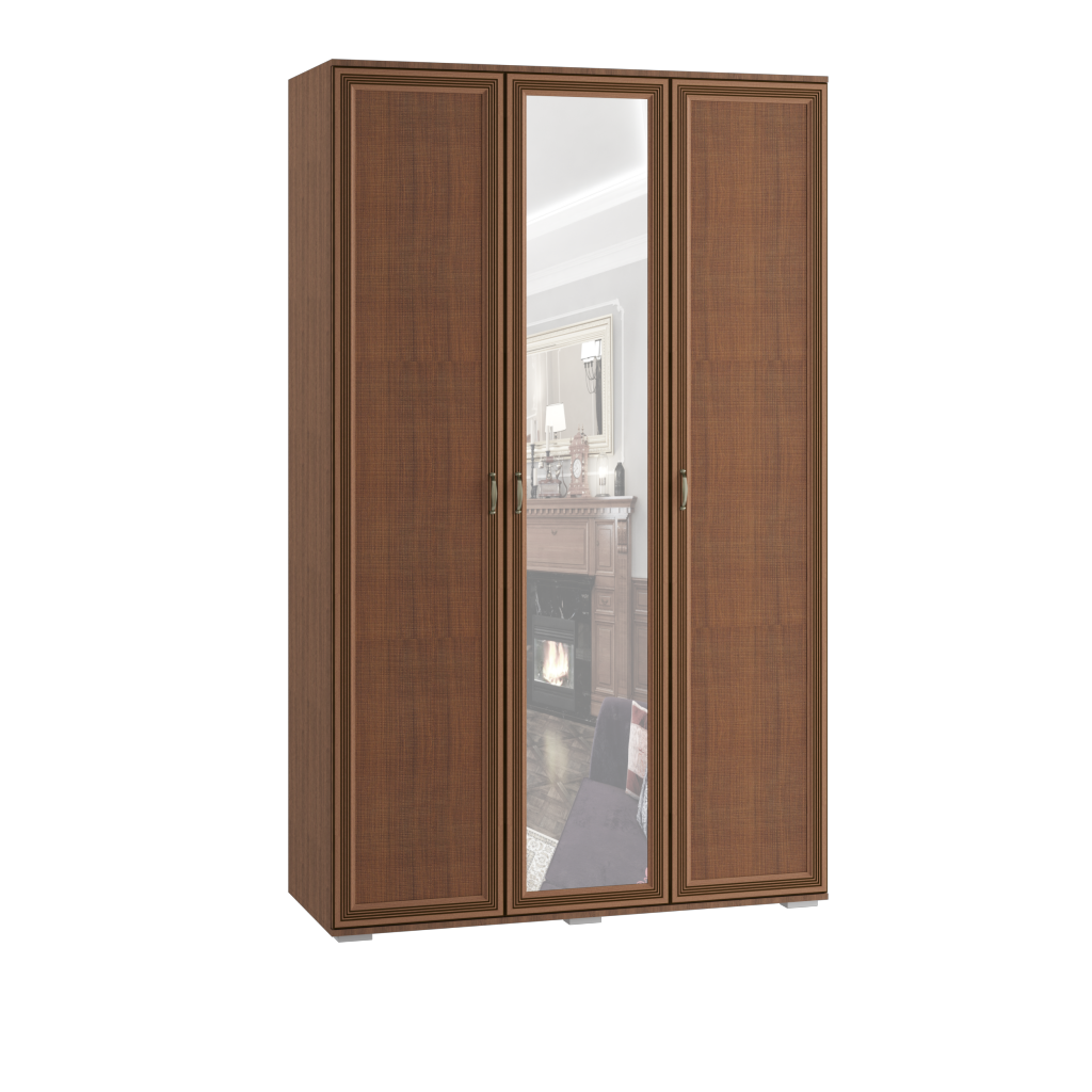 Трехстворчатый шкаф для одежды и белья Ливорно. Оснащен штангой и зеркалом в центральной частидля организации гардеробной зоны.Материал фасада:Рамочный профиль из МДФ, 3D-вставка из МДФ.Материал корпуса:ЛДСП.Установлены петли с доводчиками для бесшумного закрывания и шариковые направляющие полного выдвижения.Фурнитура:«Старая бронза» 96 мм