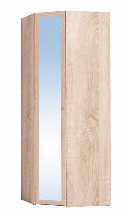 - угол. Он комплектуется внутренним стеллажом с регулируемыми по высоте полками и стационарной штангой для верхней одежды. Длина штанги 817 мм, что позволит свободно развесить более 10 плечиков с зимним гардеробом. Встроенная автоматическая подсветка поможет сориентироваться и быстро найти необходимое. Она включается только при открытой двери. Зеркальный фасад проклеен с тыльной стороны специальной пленкой, которая задержит падение осколков в том случае, если зеркало разобьется. Аккуратная рама из МДФ по периметру фасада не делит отражение и позволяет увидеть себя в полный рост без помех. Особенности Рамочные фасады из профиляМДФ Металлические ручки Встроенная подсветка Зеркало проклеено сзади специальной пленкой Крепится на стену за подвесы Полки регулируемые по высоте Материалы ЛДСП16 мм Кромка ПВХ0,2 мм ПрофильМДФ Зеркало 4 мм Задняя стенкаХДФО