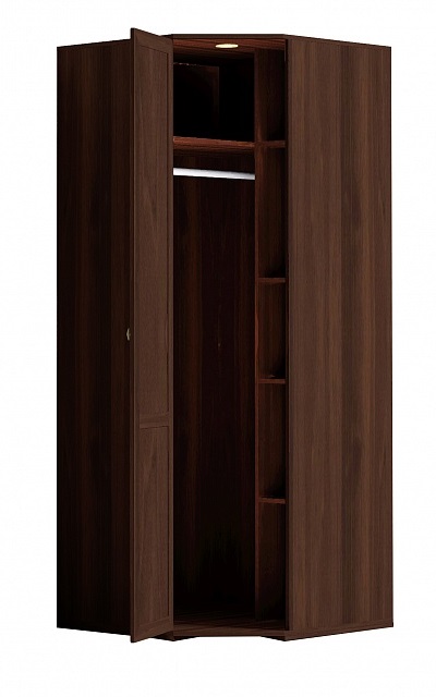 В малогабаритках и квартирах-студиях каждый свободный метр хочется использовать рационально. В данной ситуации решить вопрос грамотного хранения поможет угловой шкаф для одежды. Модель Sherlock 10 оснащена стационарной штангой длиной 81 см, на которой поместятся все Ваши деликатные вещи на плечиках. Кроме того, шкаф вмещает комплект полок для хранения одежды в сложенном виде и белья. Комплектуется беспроводной светодиодной подсветкой, которая крепится на крышку шкафа на магнитах. Габариты шкафа позволяют компоновать его с другимимодулями глубиной 59 см. Рекомендуется крепление к стене за подвесы.