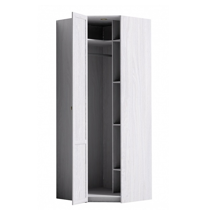 Шкаф угловой конструкции - практичный предмет мебели в любой по площади комнате, который позволяет экономить пространство и хранить вещи грамотно. Модель Sherlock 63 комплектуется внутренним стеллажом с полками, регулируемыми по высоте, и длинной стационарной штангой для вещей на плечиках. Автоматическая беспроводная подсветка включается при открытии двери, не требует сложной установки и облегчаетпоиски нужной вещи.