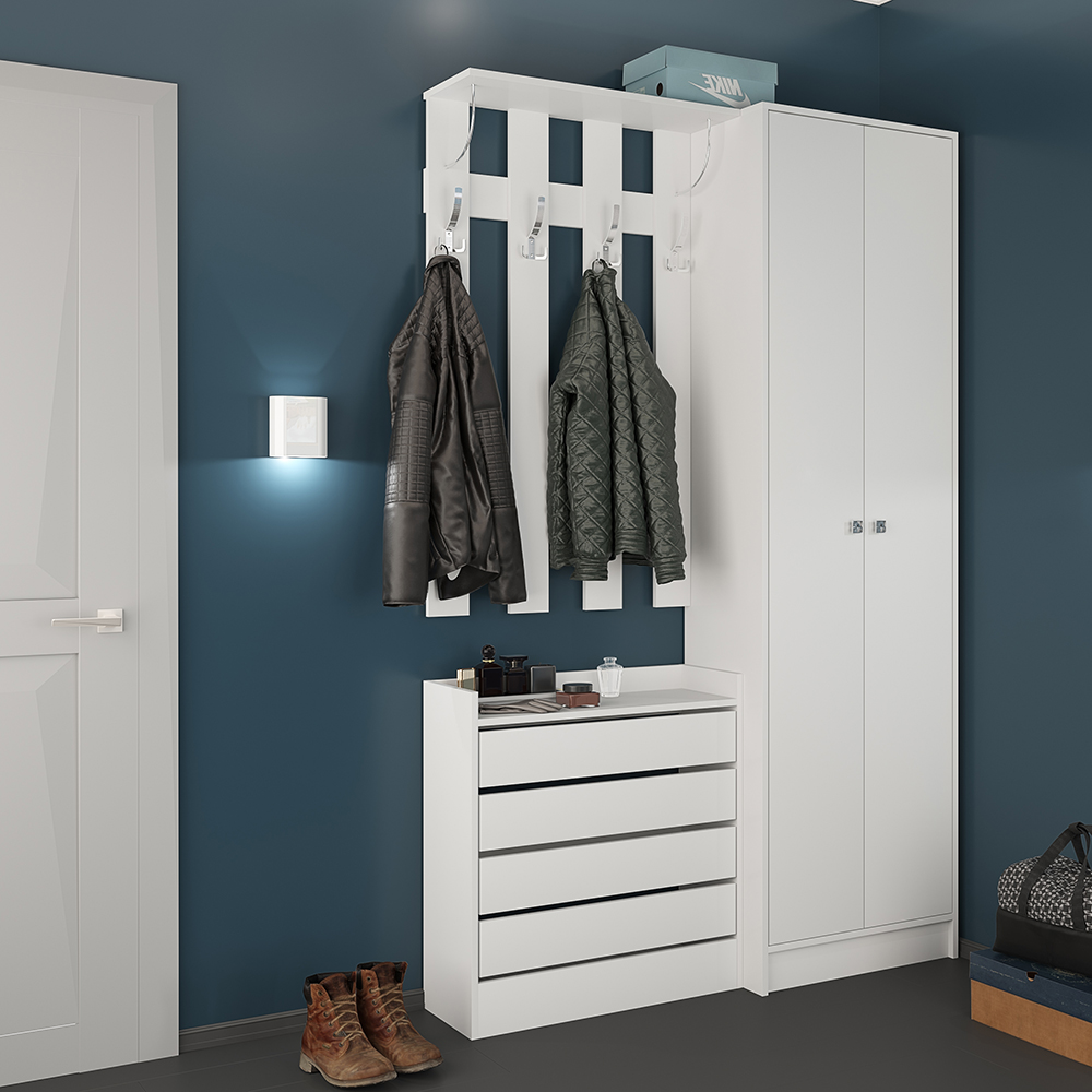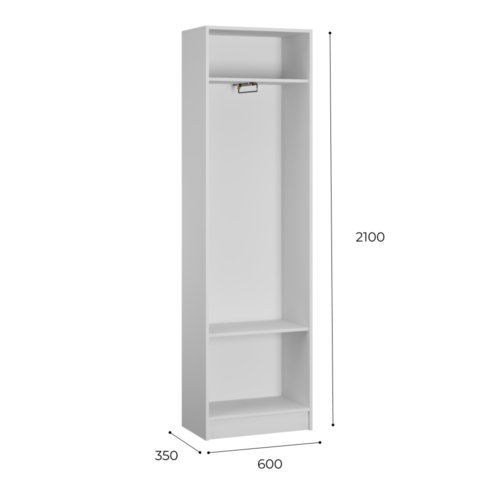 Если площадь Вашей прихожей позволяет Вам расположить двустворчатый шкаф, обратите внимание на модель из коллекции Ямайка. Модуль оснащен евроштангой и двумя полками и идеален для хранения верхней одежды, обуви и коробок с аксессуарами. Несмотря на отличную вместимость, шкаф достаточно компактен и имеет ширину всего 60 см.