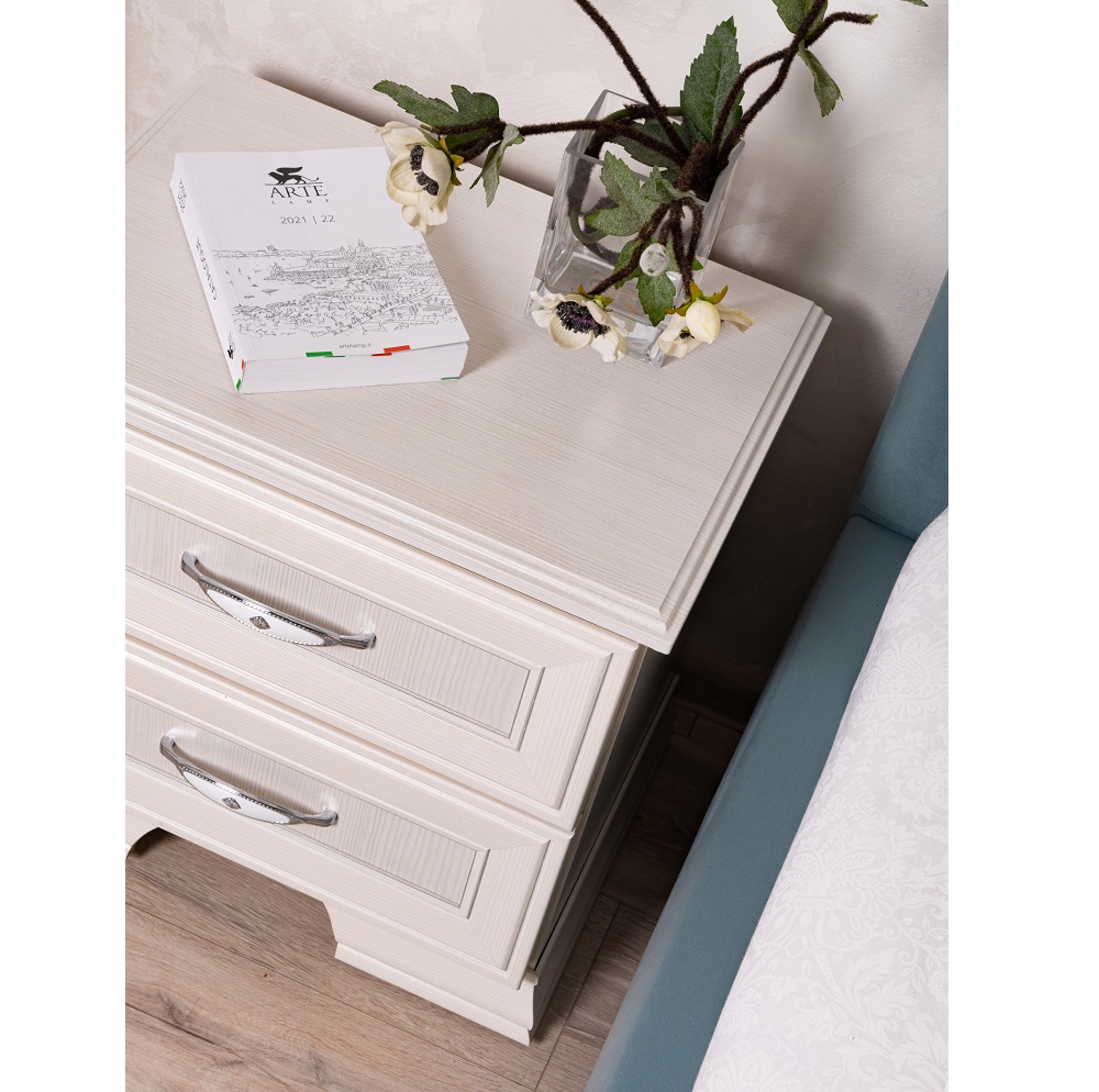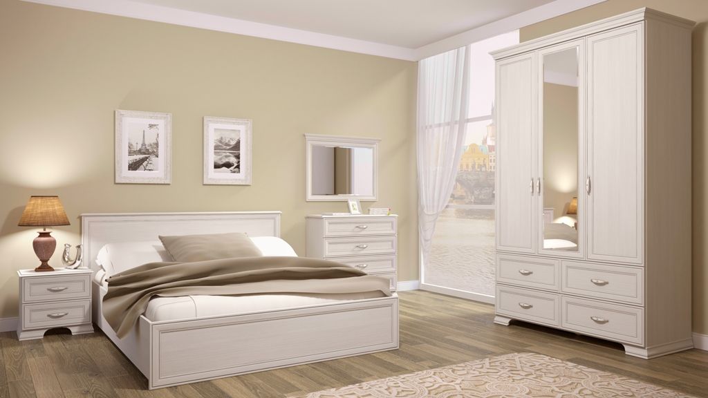 Спальня Венеция выполнена в классическом стиле и отлично впишется в любой интерьер. Петли с доводчиками на всех фасадах. Шариковые направляющие полного выдвижения. Кровати комплектуются ортопедическим основанием с подъемным механизмом. Ручки металлические цвет – «Хром глянцевый» с белой вставкой.