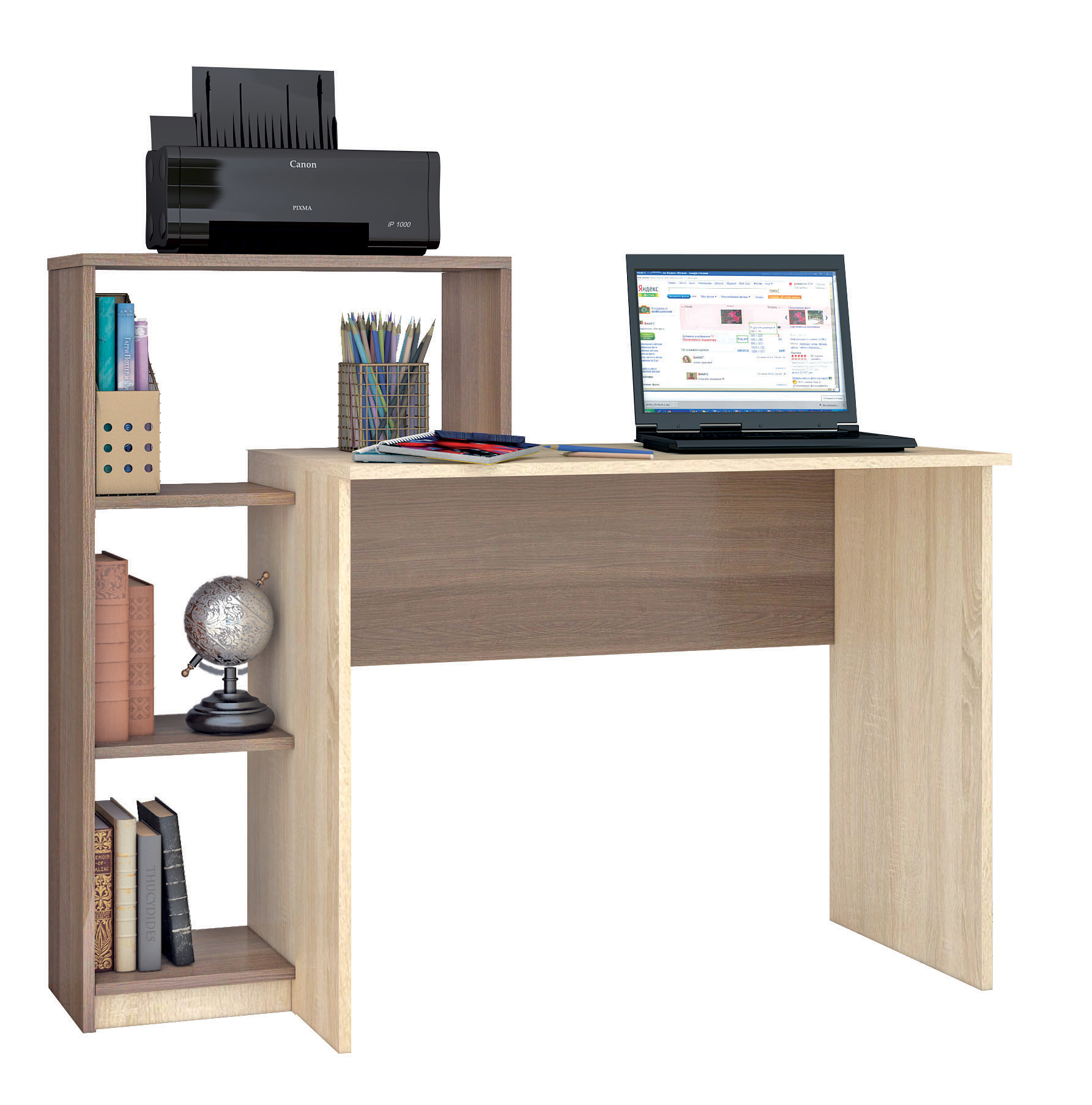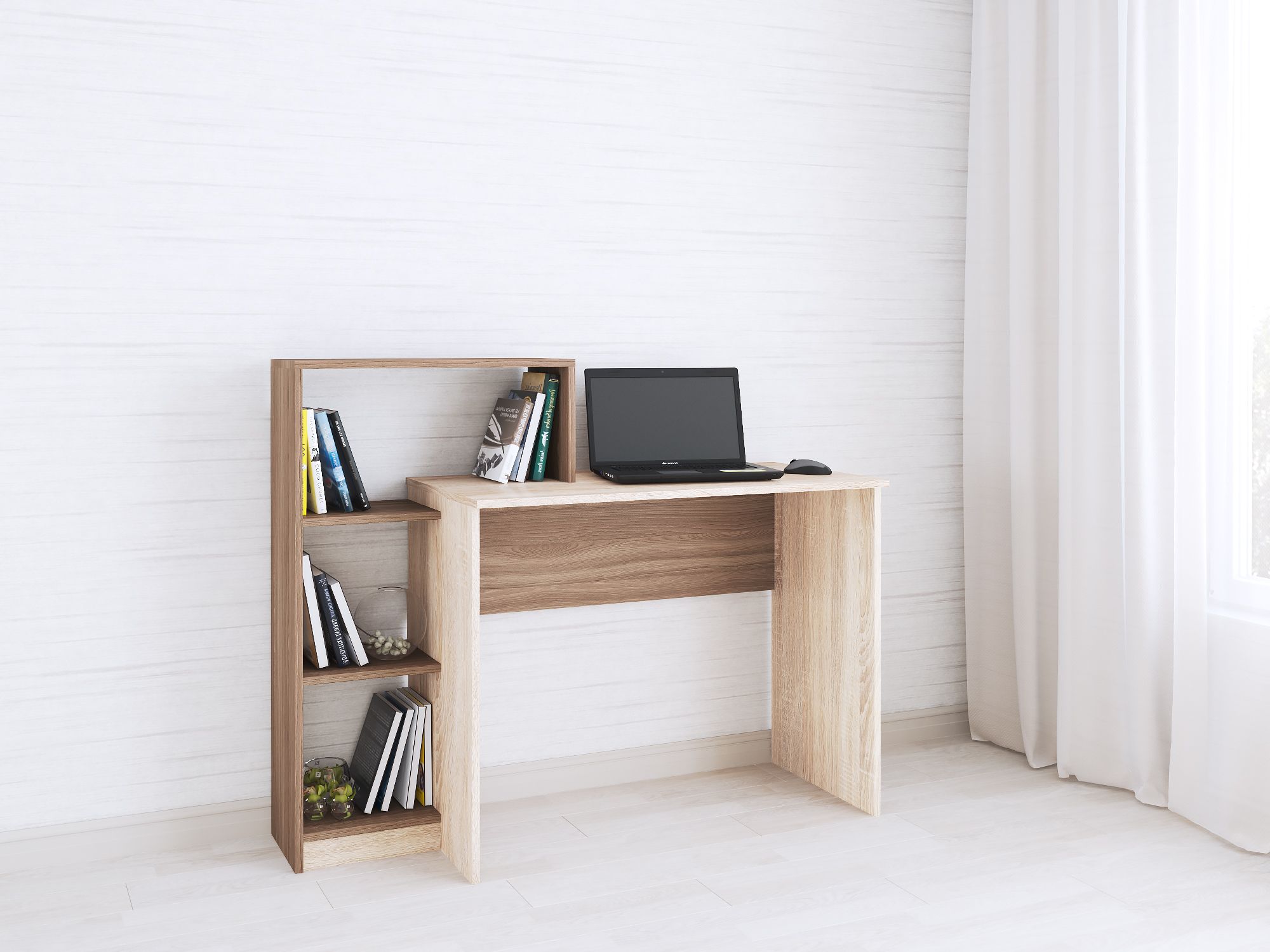 Компьютерный стол Квартет-2 сочетает в себе преимущества просторного письменного стола и вместительного стеллажа, превращаясь тем самым в полноценное рабочее место. На столе хватит места для ноутбука и настолько лампы, а на открытых полках - для книг, канцелярии и различных мелочей, которые необходимо иметь под рукой во время рабочего процесса. Пластиковые подпятники на опорах защитят напольное покрытие от деформации и царапин.