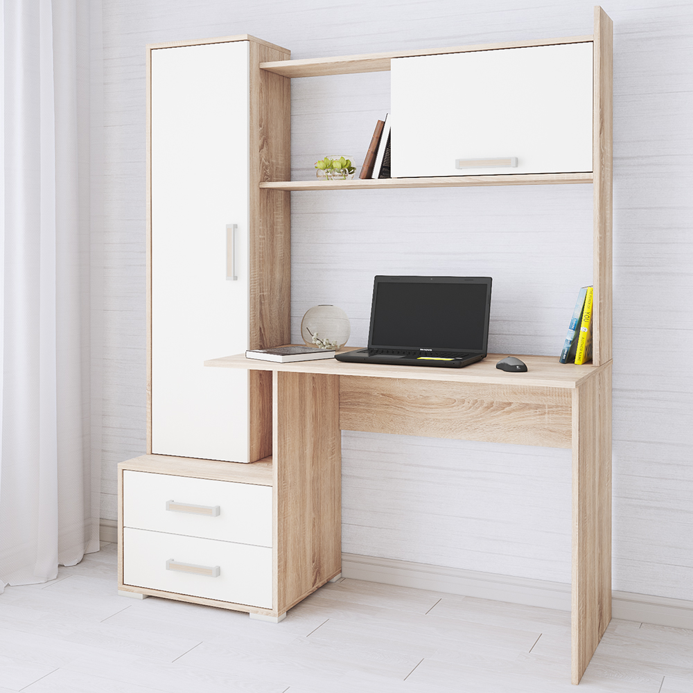 Компьютерный стол Квартет-9 - модуль, продуманный до мелочей и созданный для Вашего максимального комфорта в процессе работы или учебы дома. Прямоугольная столешница с плавными углами, надстройка с открытой и закрытой полками, закрытый шкаф-пенал и тумба с двумя выкатными ящиками - все, чтобы обеспечить удобное и грамотное хранение на рабочем месте. Приятный декор с имитацией текстуры натурального дерева придется по душе любителям эко-стиля в интерьере.