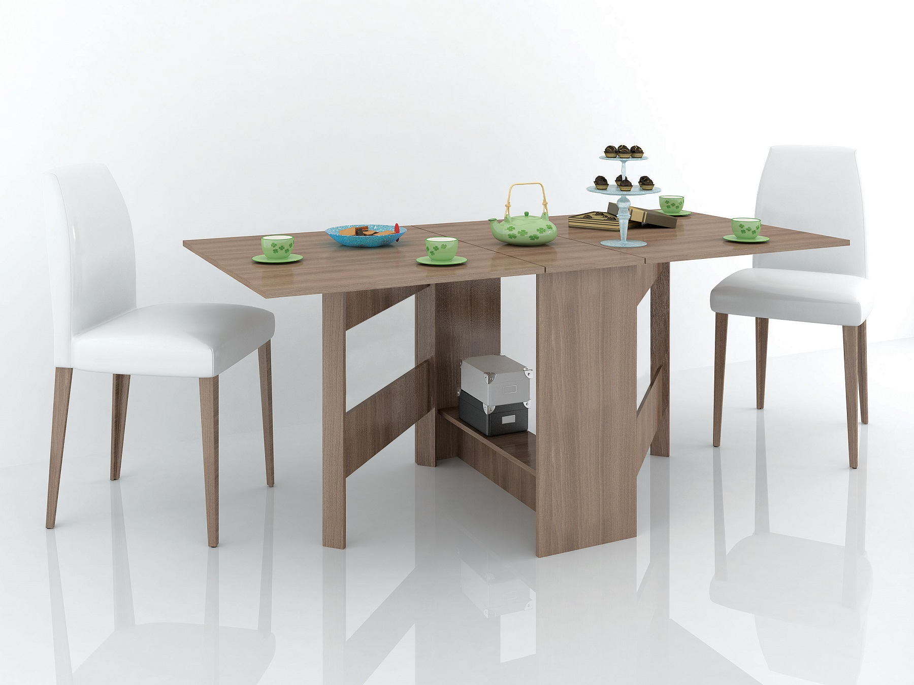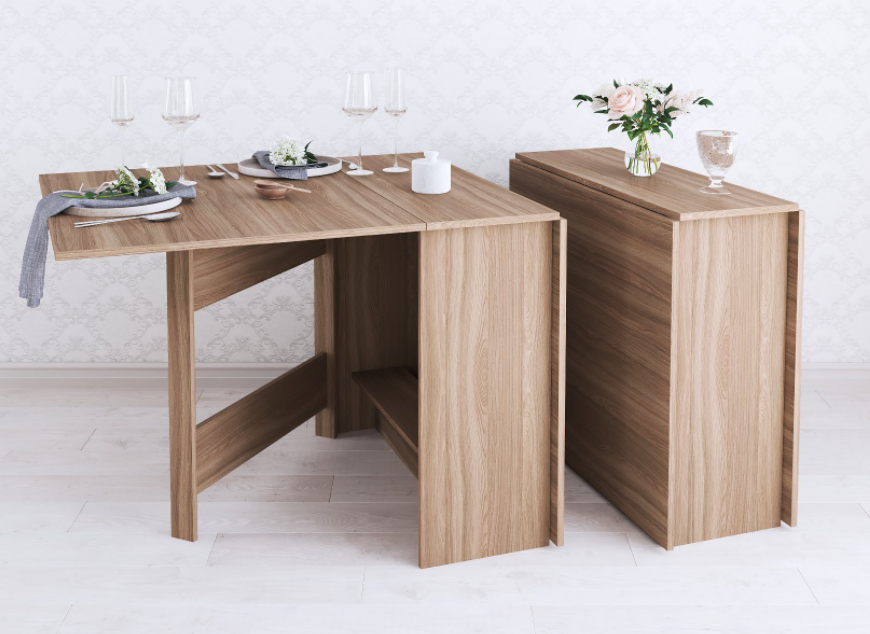 Раскладной стол для кухни - не прихоть, а скорей необходимость в малогабаритках и квартирах-студиях, где каждый метр важно использовать рационально. Данная модель имеет 3 положения: полностью сложенный, разложенный наполовину и полностью разложенный. Модель установлена на пластиковые подпятники, предохраняющие напольные покрытия от повреждения, а значит Вам не нужно бояться поцарапать пол.