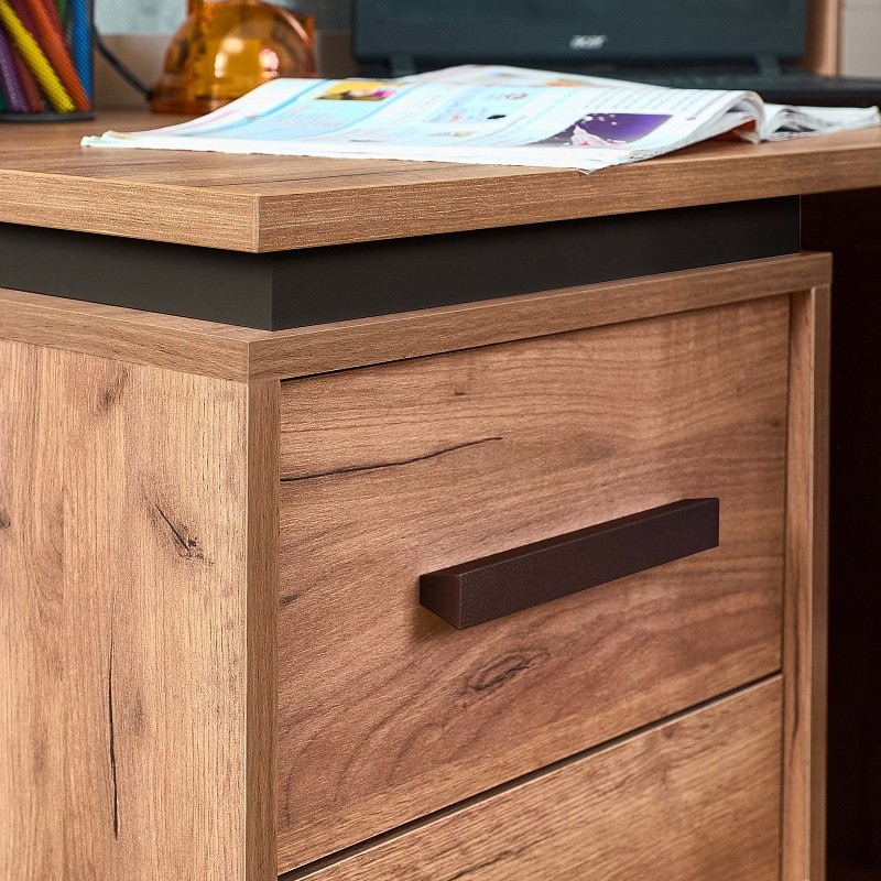 Просторная столешница письменного стола Nature позволяет разместиться за ним с комфортом как левше, так и правше. Благодаря универсальной сборке Вы можете установить тумбу с ящиками с любой удобной для Вашего ребенка стороны. Ящики комплектуются шариковыми направляющими плавного и полного выдвижения: добавляют комфорта от ежедневной эксплуатации и служат долгий срок. Столешница имеет ударопрочную кромку и не боится деформаций, а значит Вы можете не беспокоиться за появление на ней сколов, царапин и вмятин.