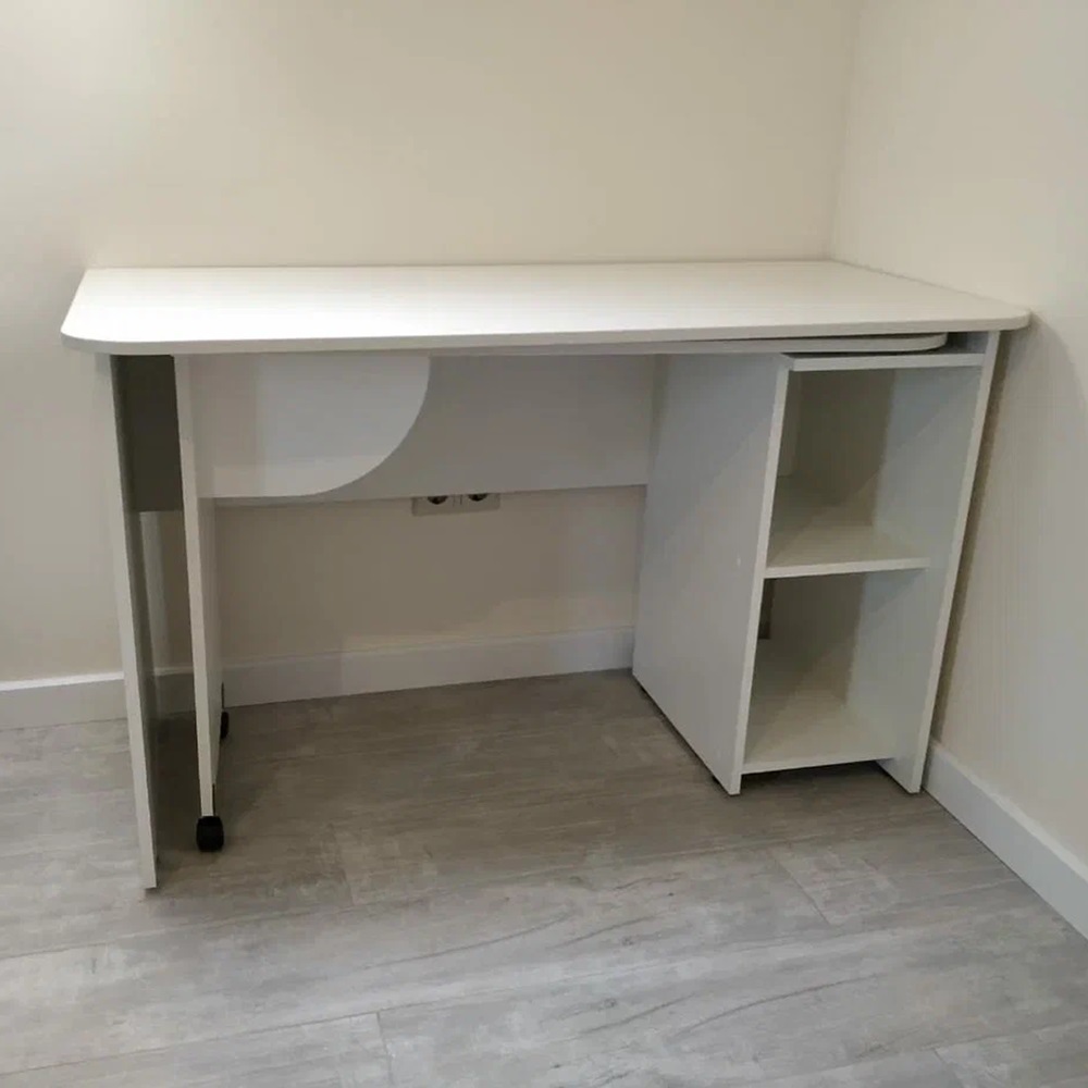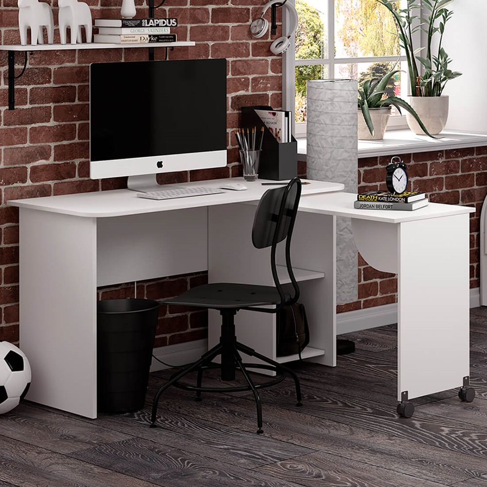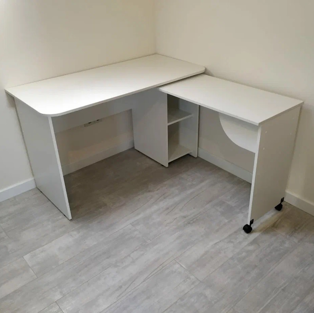 Письменный стол-трансформер Трио станет универсальным решением для любой по стилю и площади детской. Это удобное многофункциональное рабочее место с местом для хранения и выдвижной поверхностью. Имеет встроенную открытую тумбу с полкой и дополнительную столешницу, которая выдвигается с помощью колесной опоры и превращает прямой стол в угловой. Габариты стола в разложенном виде - 123х75х134 см. Благодаря универсальному белому цвету Вы можете организовать рабочую зону в детской как девочки, так и мальчика.