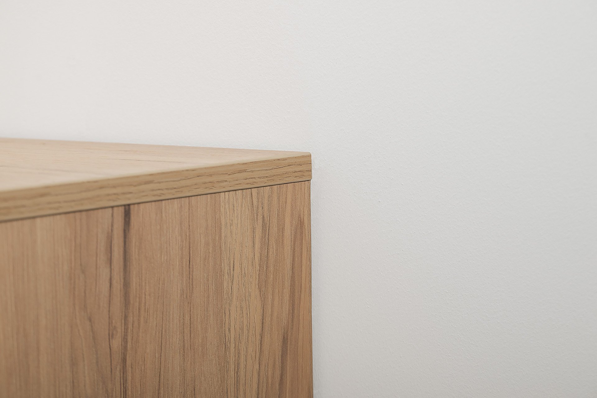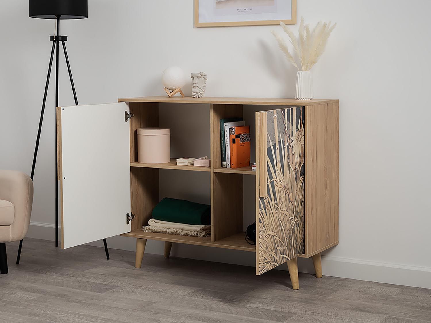 Комод имеет 2-е глухие распашные двери, за которыми по 2-е полки.