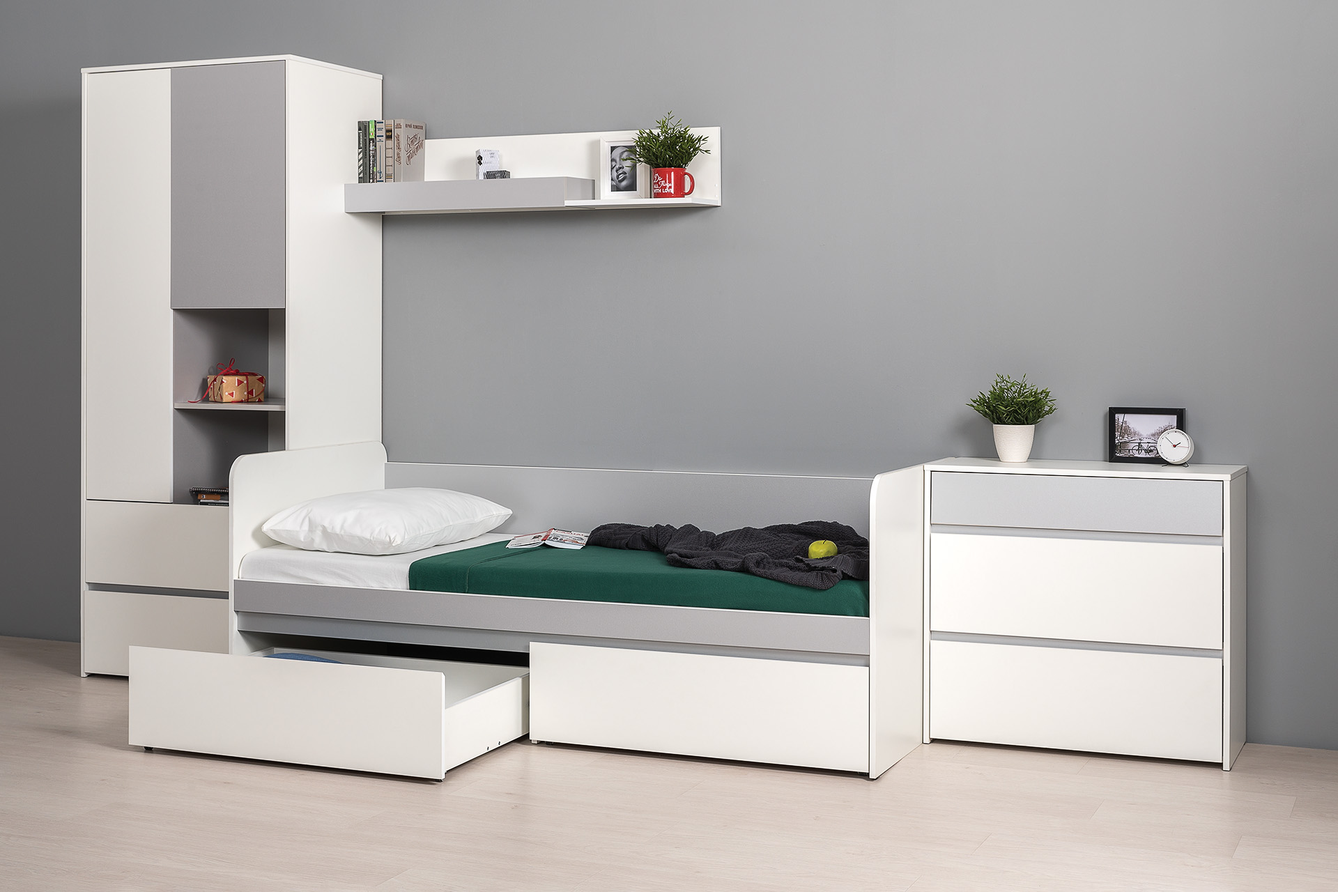 Торонто кровать 11.39 Белый/Серый создаст комфортное спальное место в детской или молодежной комнате.