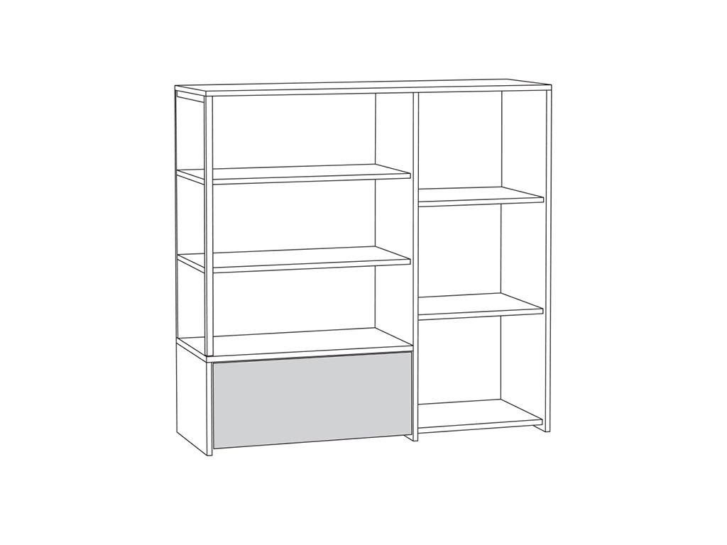 Конструкция с 3-я выдвижными ящиками для хранения и открытой полкой.