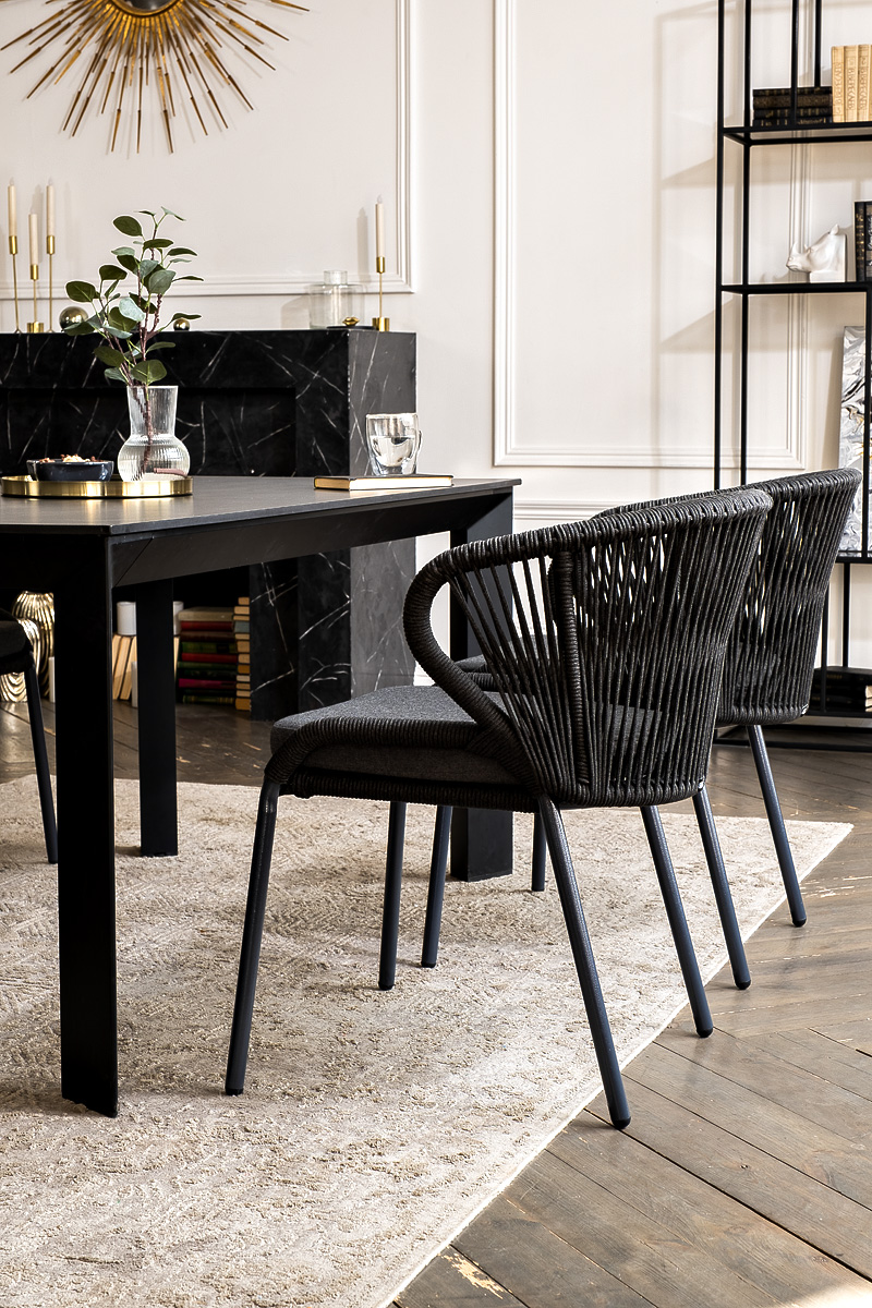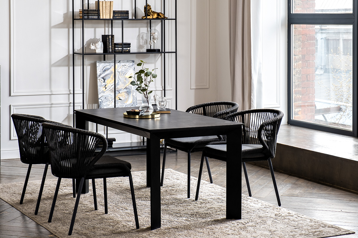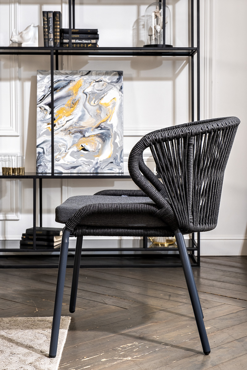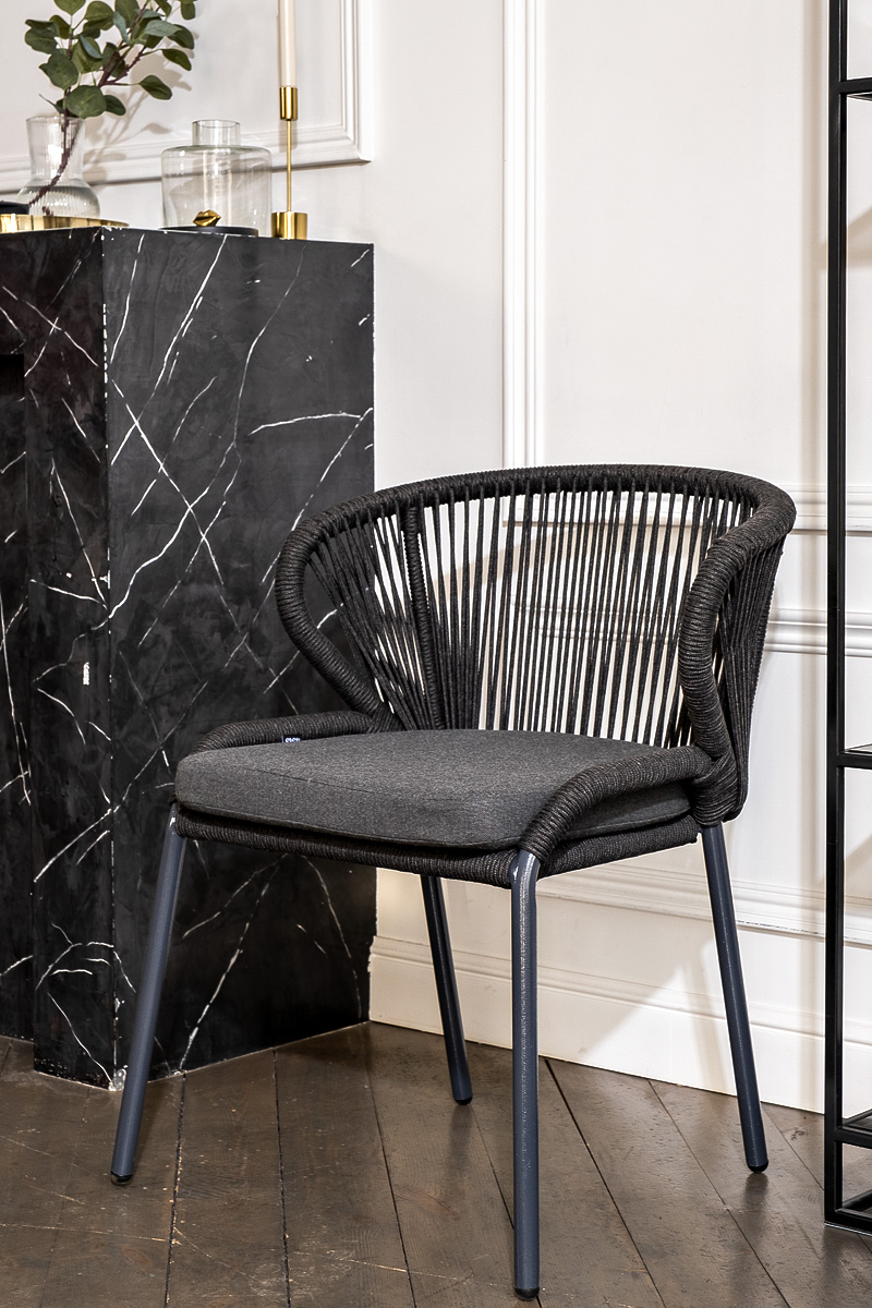 Стол «Венето» оснащен столешницей из надежного HPL-пластика, который обладает высокими показателями стойкости к истиранию, ударам, высоким температурам и влаге, обеспечивая долговечность использовани "Венето" обеденный стол из HPL 160х80см, цвет "серый гранит", каркас черный 1шт. 1 600Х800Х750, "Милан" стул плетеный из роупа, каркас алюминий темно-серый (RAL7024) муар, роуп темно-серый круглый, ткань темно-серая 027 4шт. 600Х660Х795,