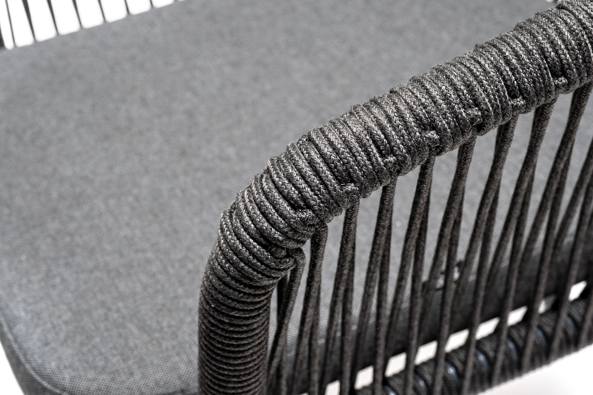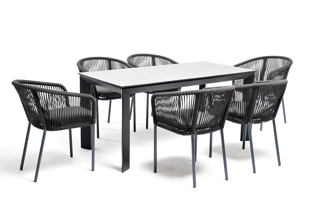 - 6 плетеных стульев «Марсель» из роупа, размером - 570×620×775 мм, цвет роупа - темно-серый, каркас из алюминия, окрашен порошковой краской в темно-серый оттенок. "Венето" обеденный стол из HPL 160х80см, цвет "серый гранит", каркас черный 1шт. 1 600Х800Х750, "Марсель" стул плетеный из роупа, каркас алюминий темно-серый (RAL7024) муар, роуп темно-серый круглый, ткань темно-серая 027 6шт. 570Х620Х775,