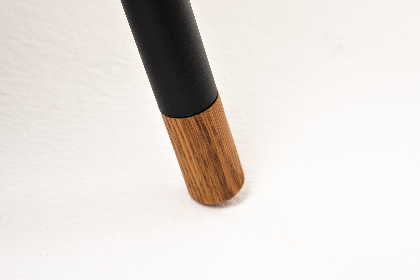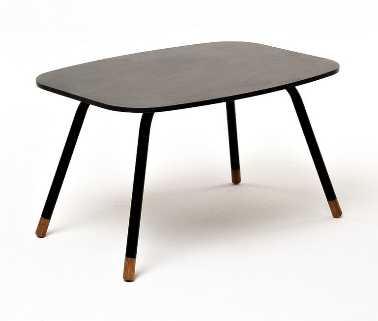 Каркас столика изготовлен из алюминия, окрашенного в черный цвет. Алюминий является легким и прочным материалом, что обеспечивает долговечность и надежность изделия. На ножках столика идут дубовые наконечники (заглушки).