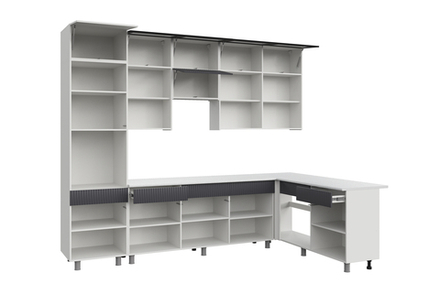 Модульные системы для кухни включают в себя самые разные функциональные компоненты. Среди них могут оказаться шкафы, полки, ящики и столешницы, которые не составляет труда комбинировать и настраивать в зависимости от потребностей и размеров помещения.