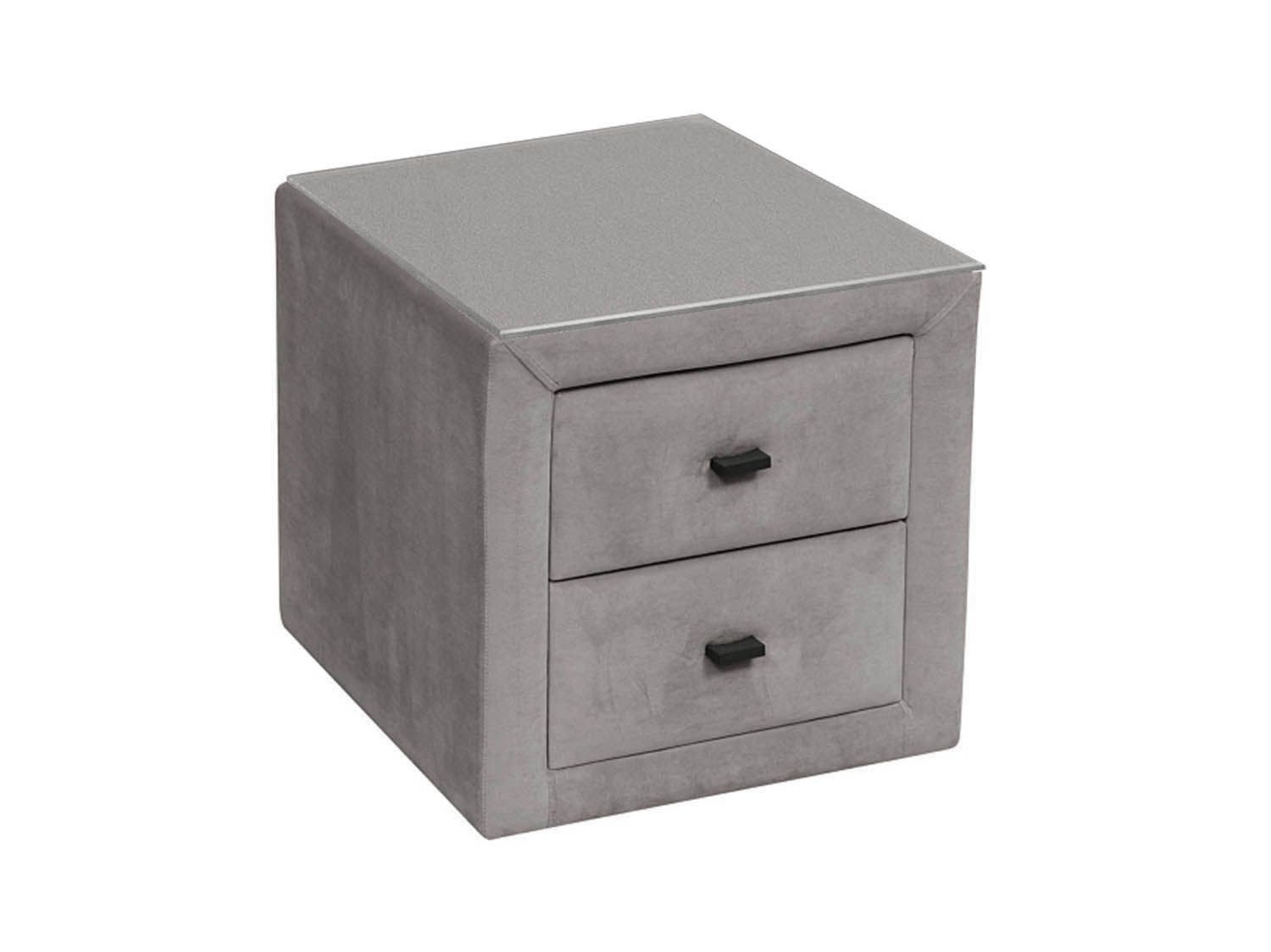 06.34-01 тумба прикроватная со стеклом Гамма велюр грей станет прекрасным дополнением для интерьера спальной комнаты.