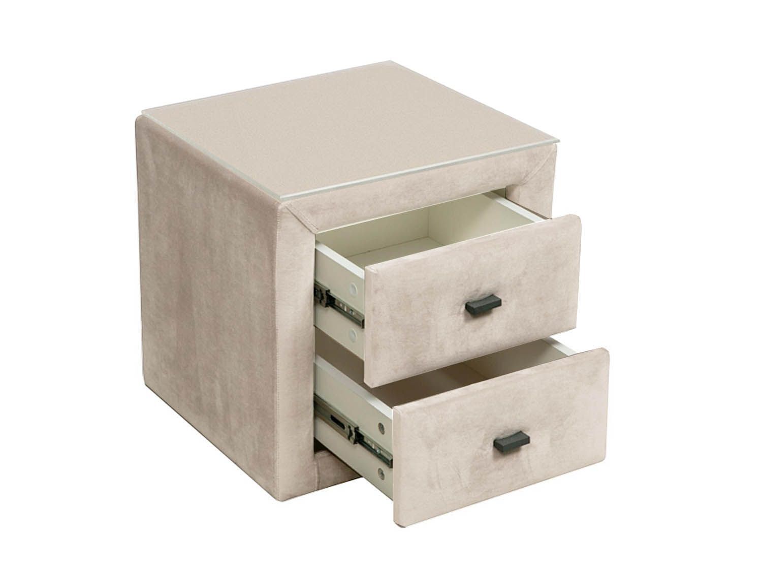 06.34-01 тумба прикроватная со стеклом Гамма велюр крем станет прекрасным дополнением для интерьера спальной комнаты.