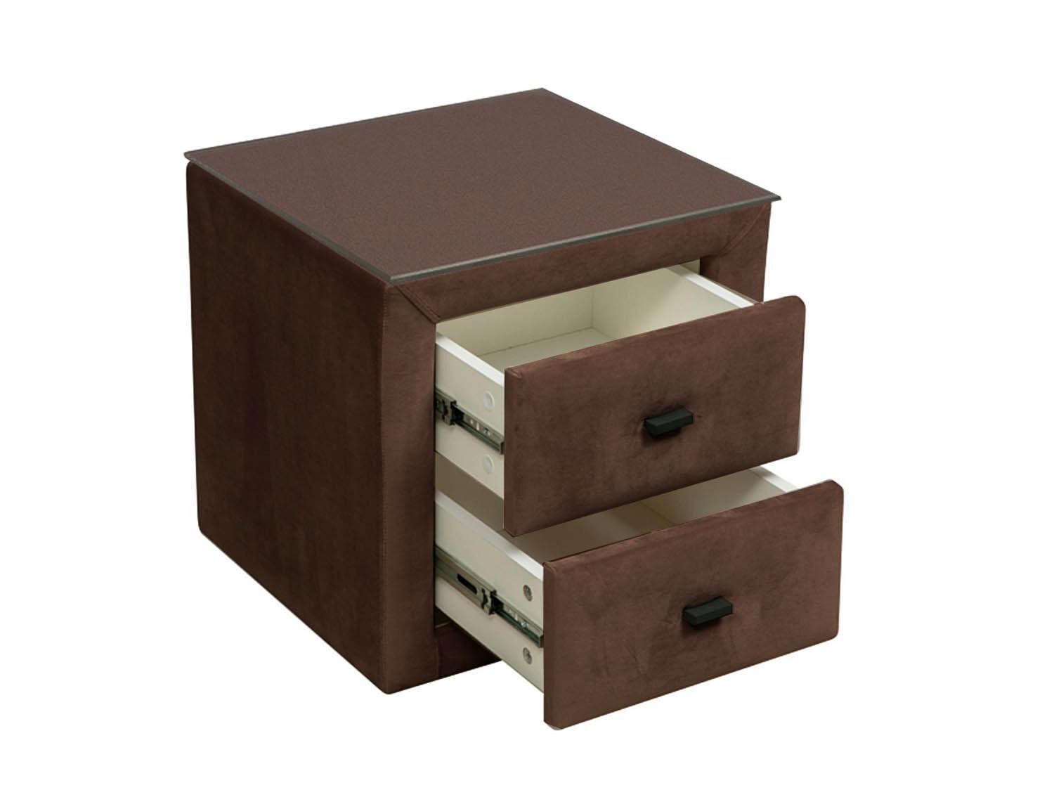 06.34-01 тумба прикроватная со стеклом Гамма велюр шоколад станет прекрасным дополнением для интерьера спальной комнаты.