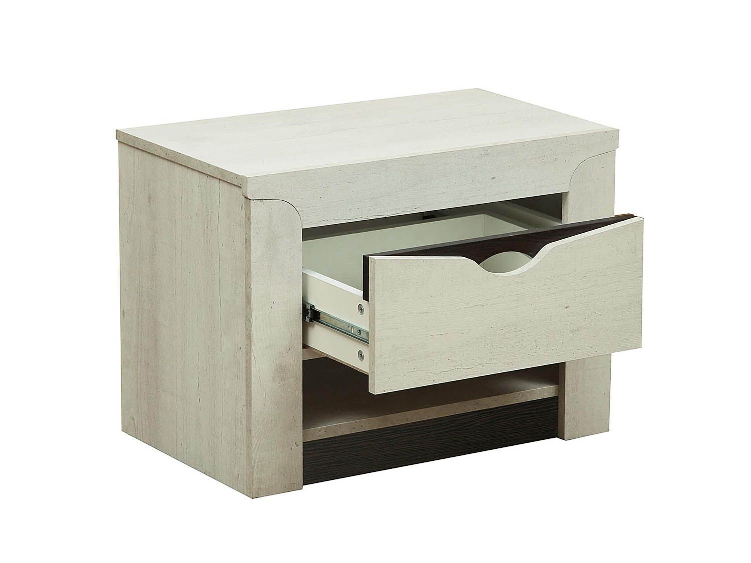 33.12 Лючия тумба прикроватная Бетон пайн белый/венге - яркое и продуманное решение для интерьера спальной комнаты.