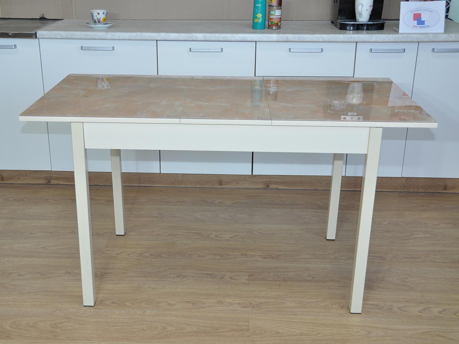 Альфа фотопечать стол обеденный раздвижной / мрамор бежевый/дуб молочный/бежевый - яркий предмет мебели для кухни или столовой комнаты.
