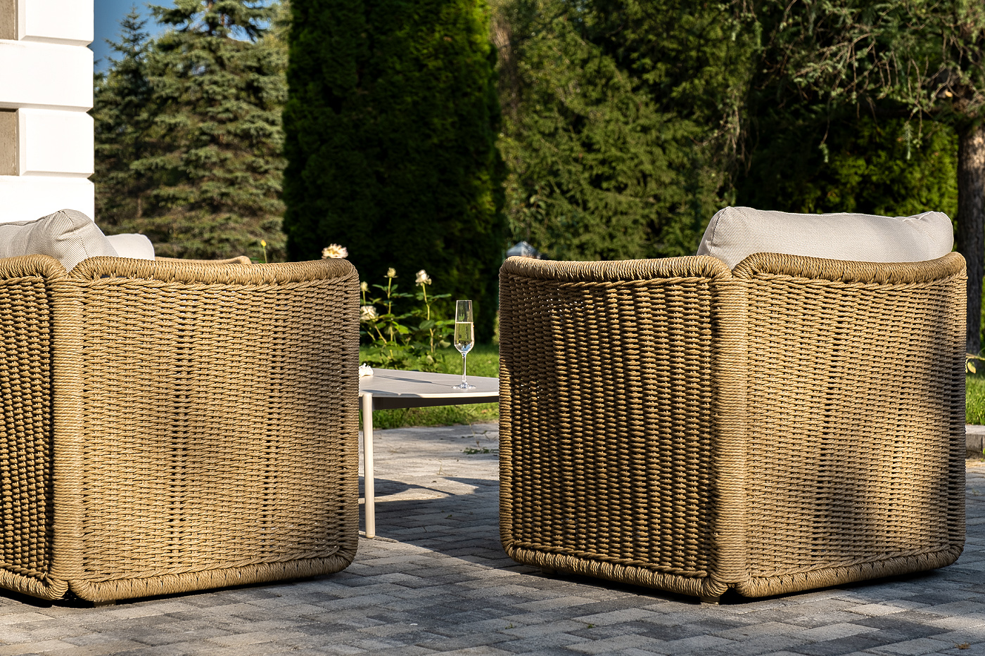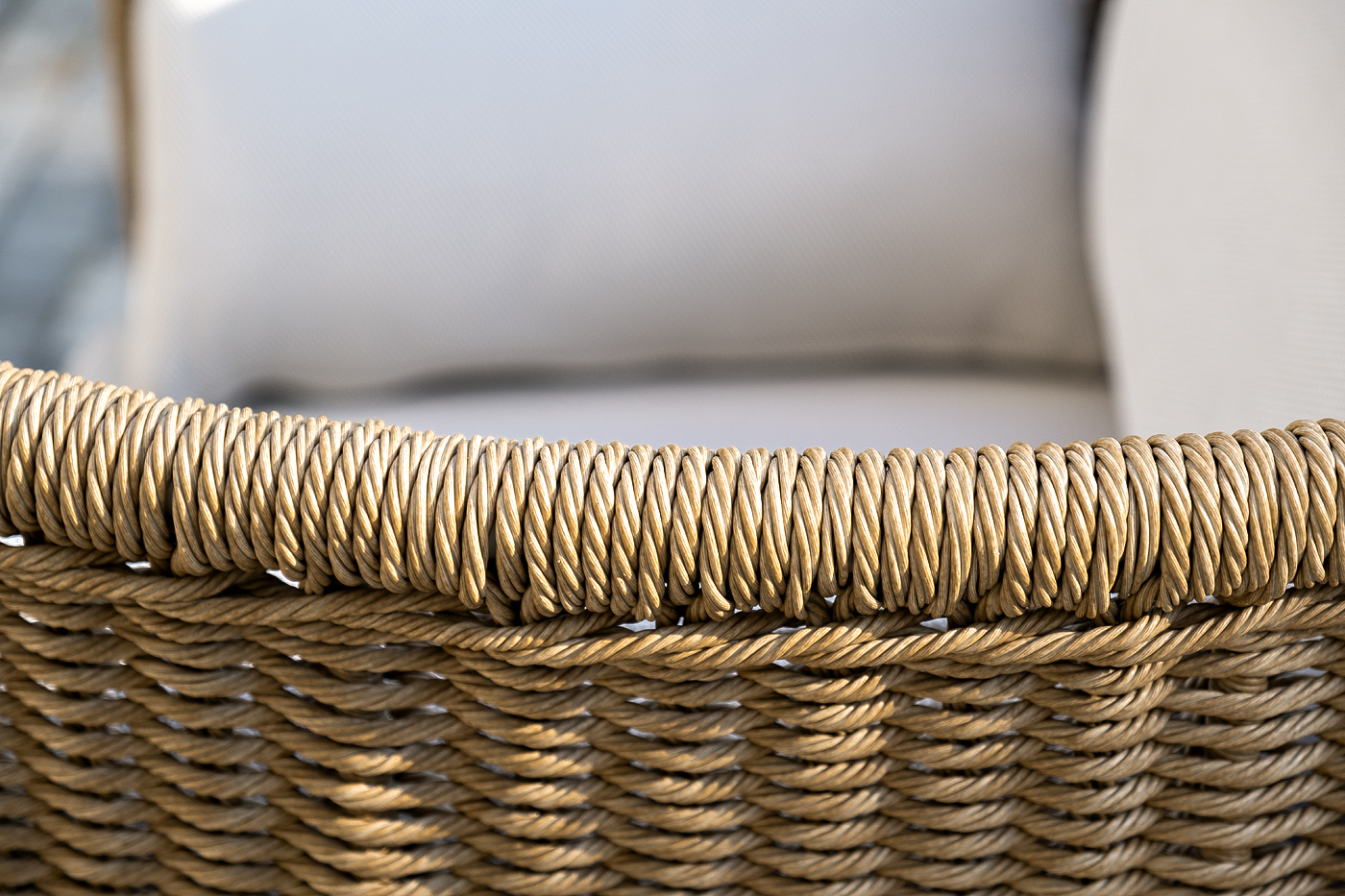 Искусственный ротанг украшает мебель в качестве круглого ручного плетения - 7 мм. Оно представлено в соломенном цвете.