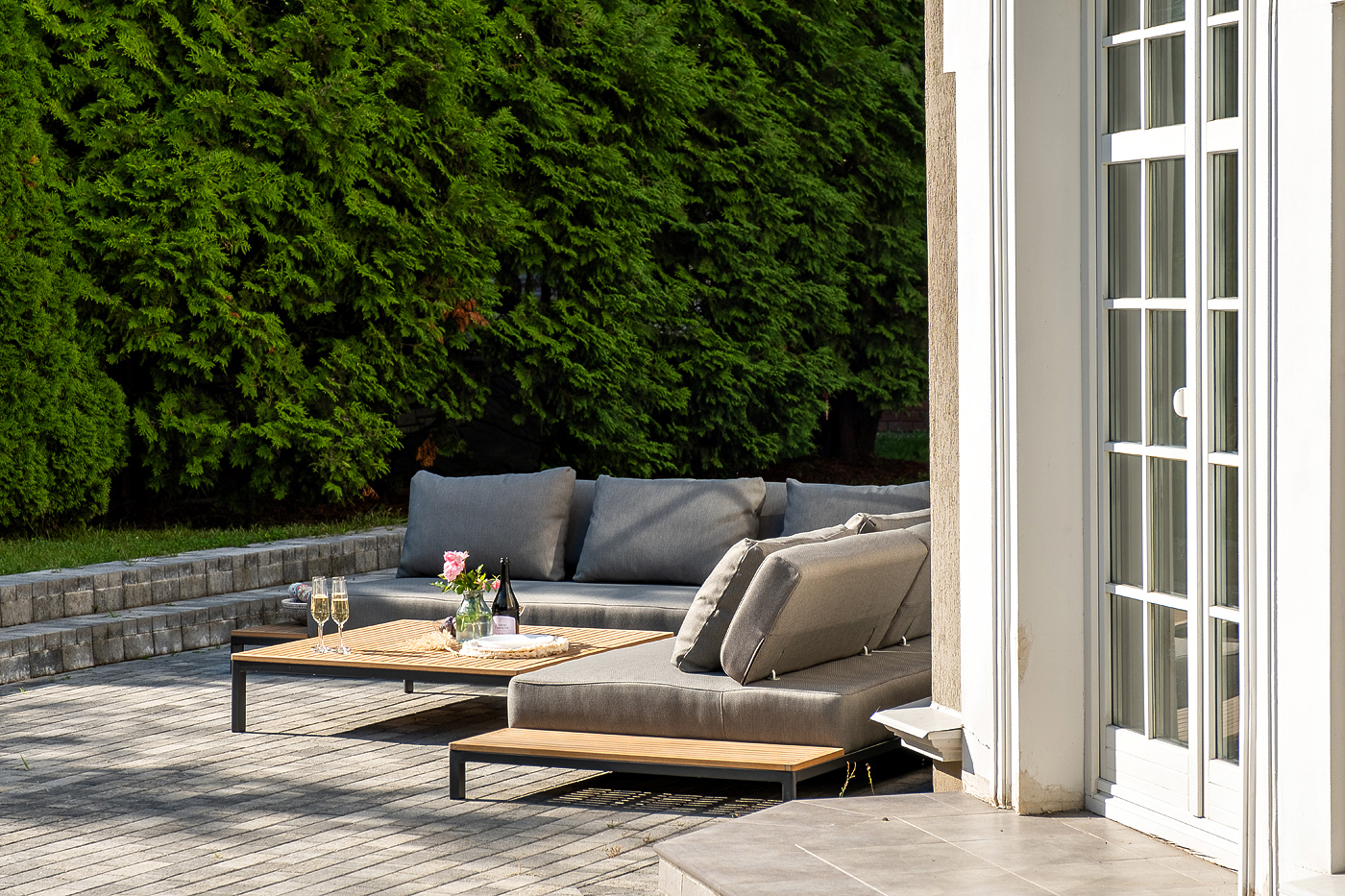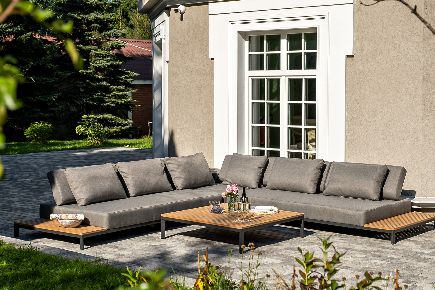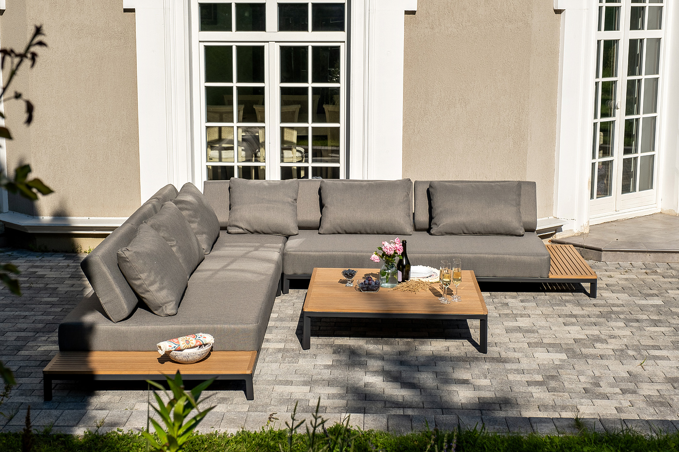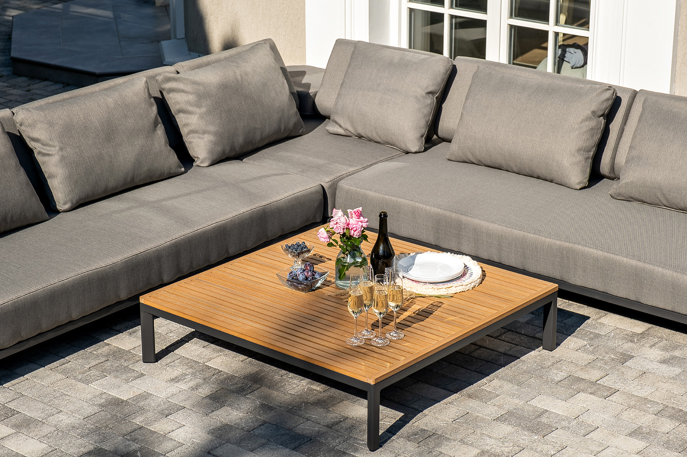 Данна "Амальфи" журнальный столик из тика, 110x110, H26, каркас из алюминия 1шт. 1 100Х1 100Х260, "Амальфи" модуль диванный левый, каркас из алюминия 1шт. 2 240Х1 100Х460, "Амальфи" модуль диванный правый, каркас из алюминия 1шт. 2 240Х1 100Х460, "Амальфи" модуль диванный угловой, каркас из алюминия 1шт. 1 100Х1 100Х460,