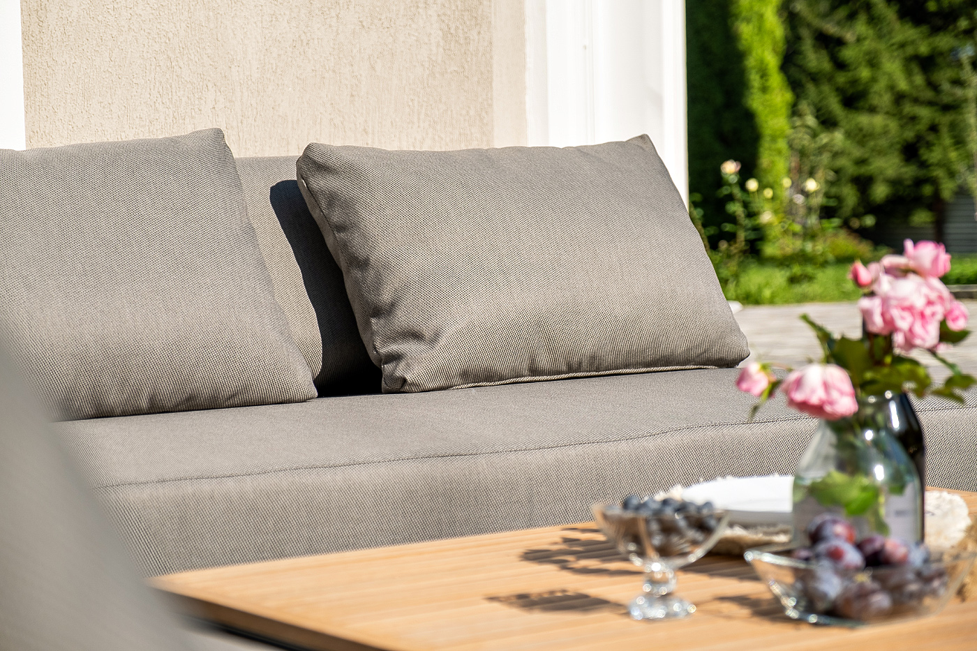 К модулям идут подушки из полиэстера, плотностью 300гр/м2 с влагоотталкивающей пропиткой и быстросохнущей ткани.