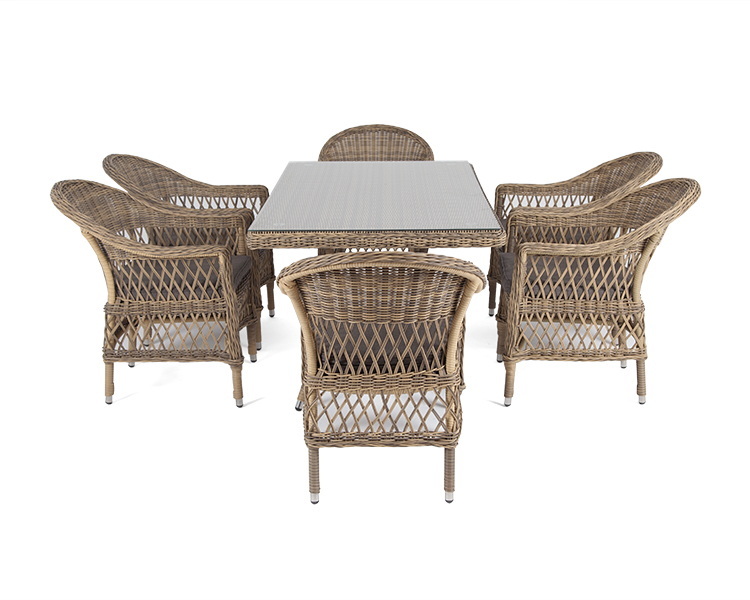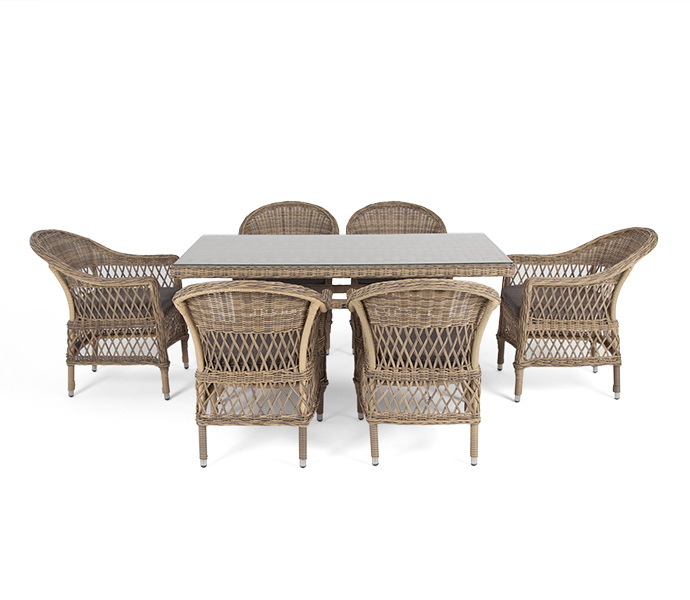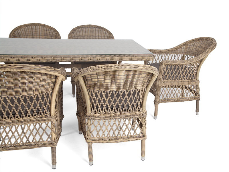 "Сицилия" плетеный стул из искусственного ротанга, цвет соломенный 6шт. 590Х640Х820, "Латте" плетеный стол из искусственного ротанга 160х90см, цвет соломенный 1шт. 1 600Х900Х750,
