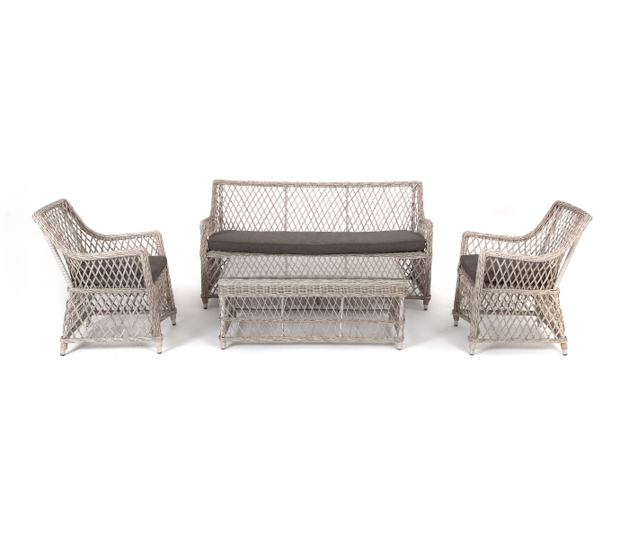 Лаунж-зона «Асти» подходит для размещения четырех персон. За прочность конструкции отвечает каркас из алюминия.