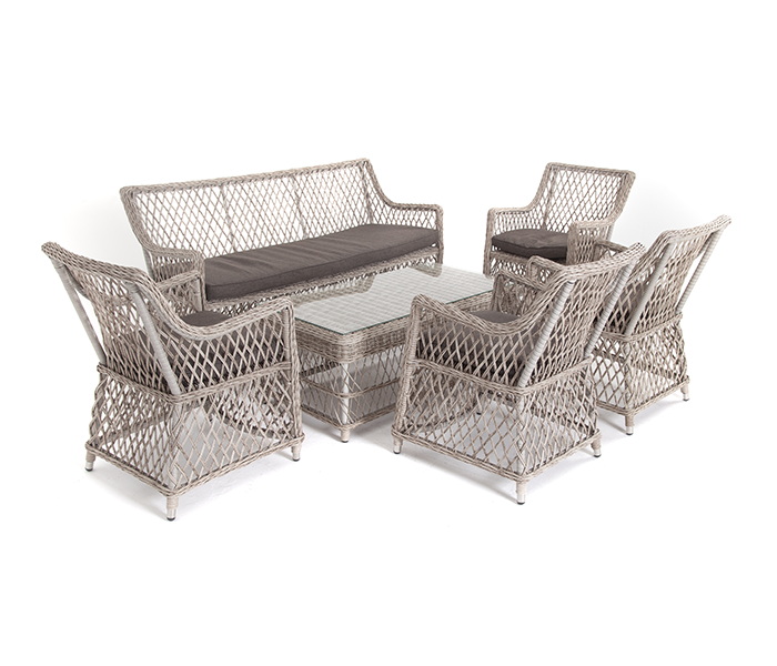 Лаунж-зона «Асти» подходит для размещения 6 персон. За прочность конструкции отвечает каркас из алюминия.