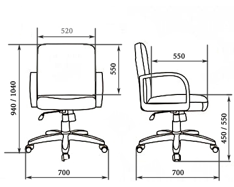 Кресло с низкой спинкой, с подлокотниками дугообразной не замкнутой формы с мягкими накладками, обитыми в цвет кресла.
