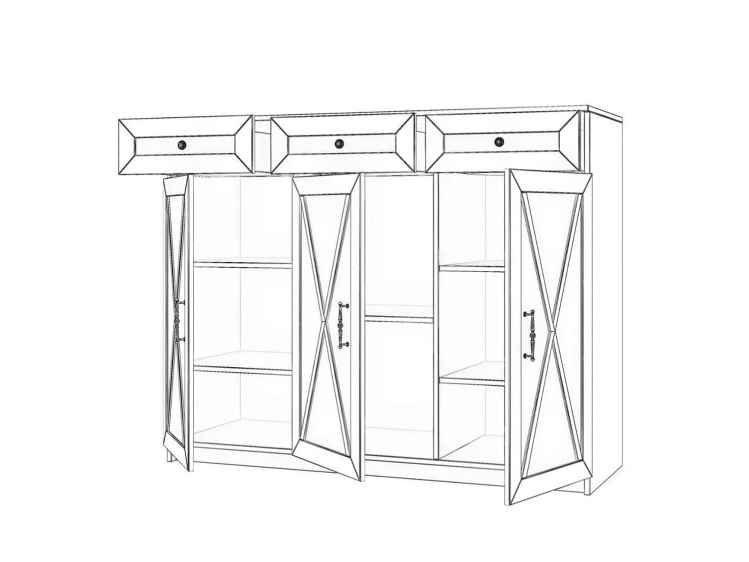 Конструкция с 3-я распашными дверцами и 3-я выдвижными ящиками.