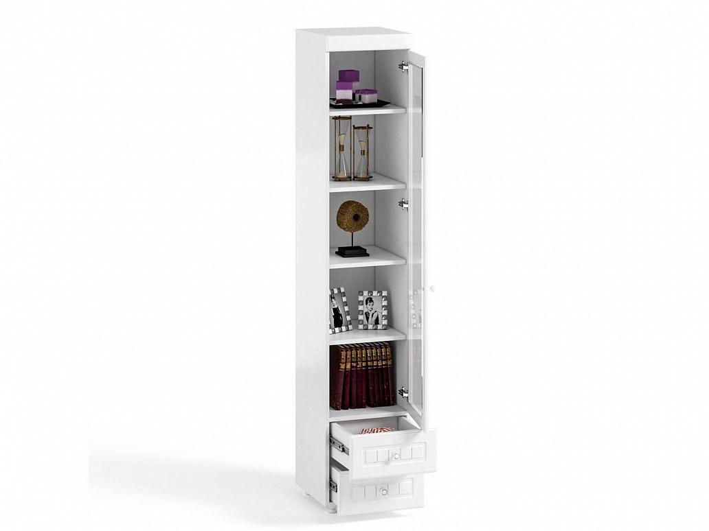 - Шкаф-пенал 1дв. (гл.410) со стеклом и ящиками Монако МН-31 белое дерево 2шт.