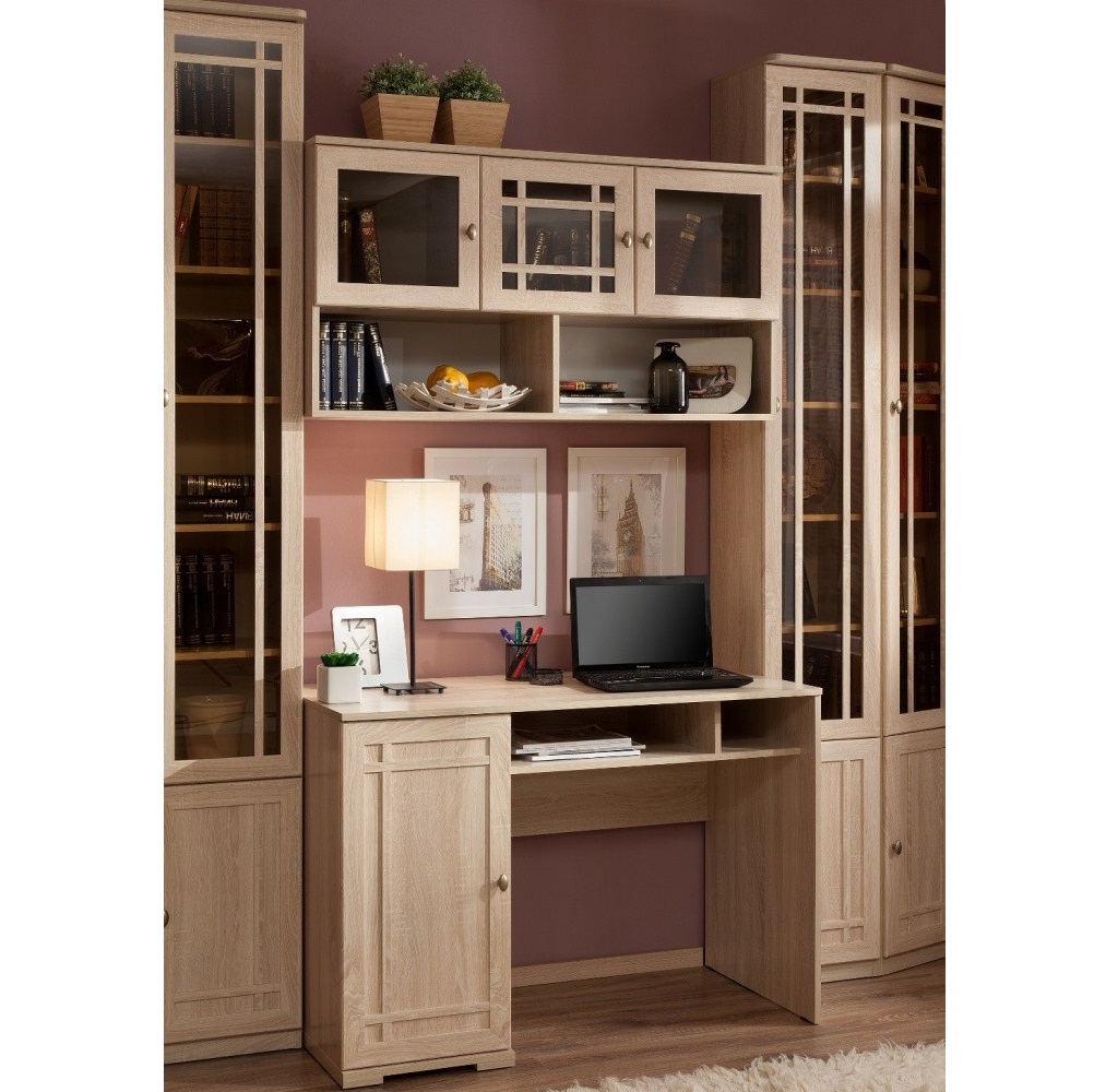 Если Вы любите читать и собрали немалую коллекцию книг, то домашняя библиотека именно для Вас. Библиотека SHERLOCK в светлом древесном декоре Дуб Сонома, понравится тем, кто ценит классику и изысканность. Чтобы использовать ценные квадратные метры с максимальной пользой, для библиотеки разработаны высокие и неглубокие книжные шкафы. За счет своей высоты (2395 мм) такие шкафы очень вместительны. Их необходимо дополнительно крепить к стене за подвесы. Регулируемые полки из ЛДСП выдерживают нагрузку не менее 11 кг – это очень важно, ведь книги имеют большой вес!Декоративный переплетиз МДФ на тонированных стеклах и рамочных фасадах подчеркивает классический стиль коллекции.
