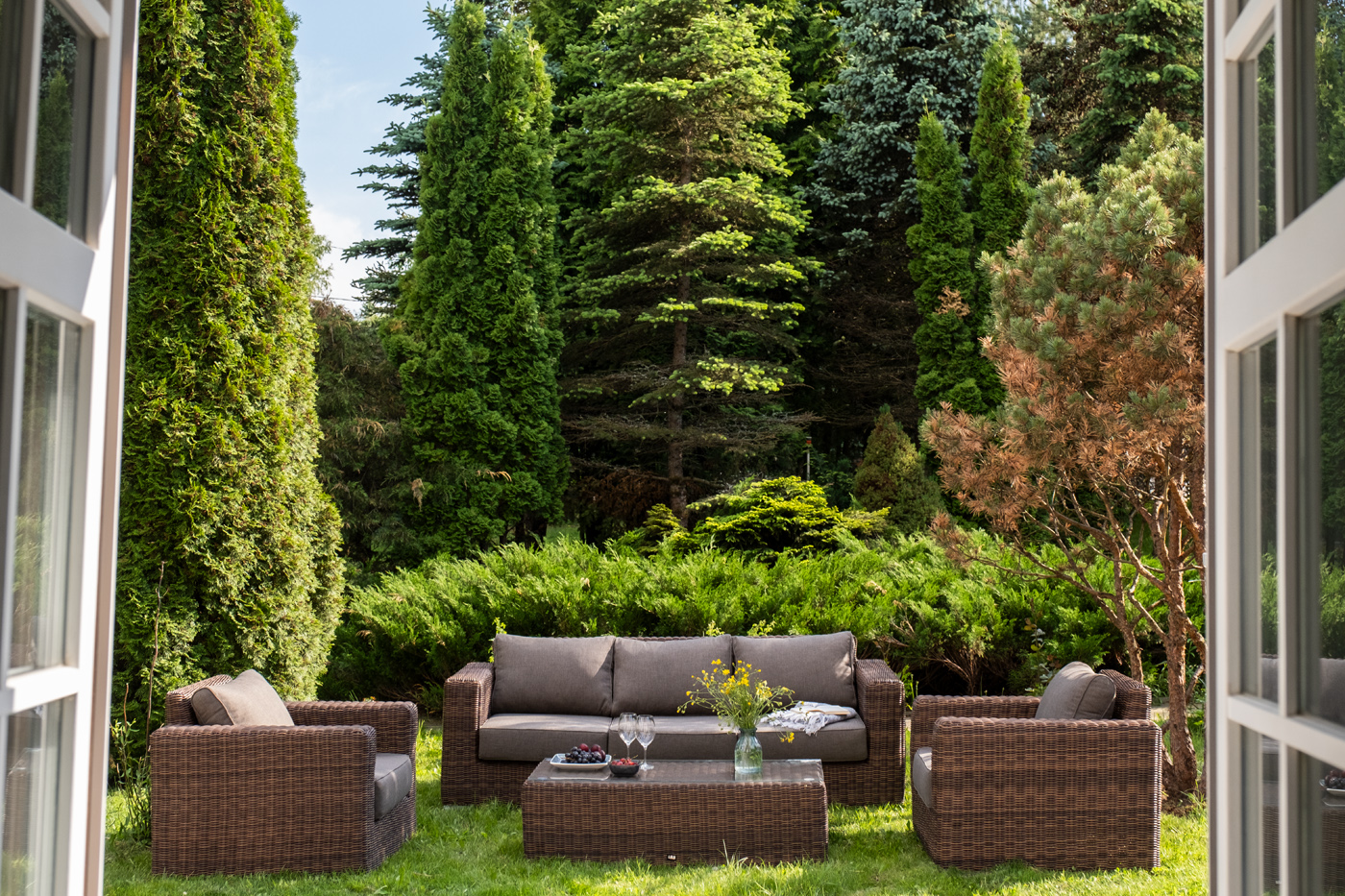Комплект «Боно» с плетением из искусственного круглого ротанга для обустройства лаунж-зоны.