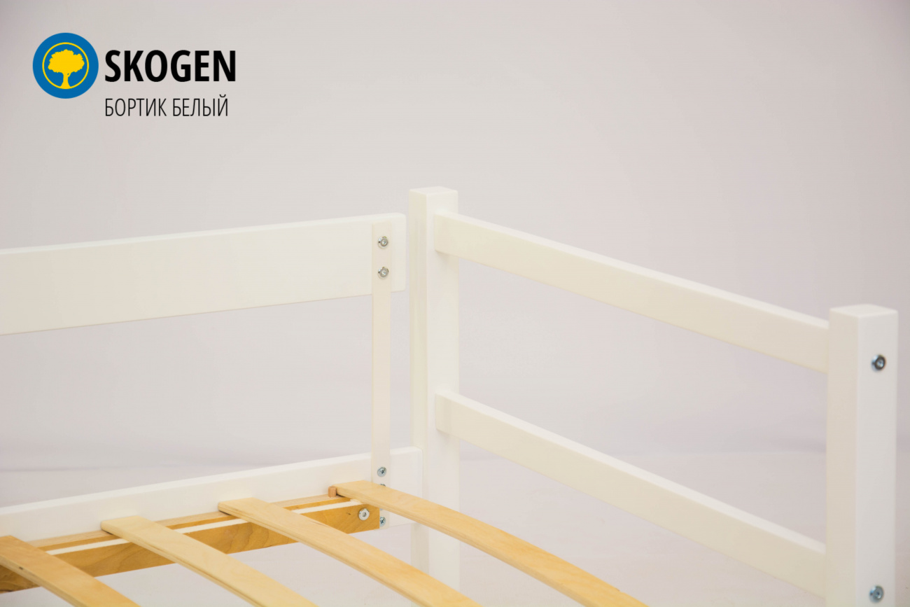 В возрасте четырех-пяти лет дети самостоятельно укладываются спать и встают с кровати. Бортики, установленные на всю длину кровати, им будут мешать. Рекомендуется приобрести модель кроватки с ограждением на 1/3 длины основания. Оно не мешает ребенку проявлять самостоятельность, но и оберегает его от падений во время сна. Характеристики: Размеры: 79x8x2 Материал: МДФ, Металл Покрытие: Эмаль на водной основе Cвойства покрытия: Поверхность покрыта эмалью/лаком на водной основе. Без запаха. Безопасно для детей.