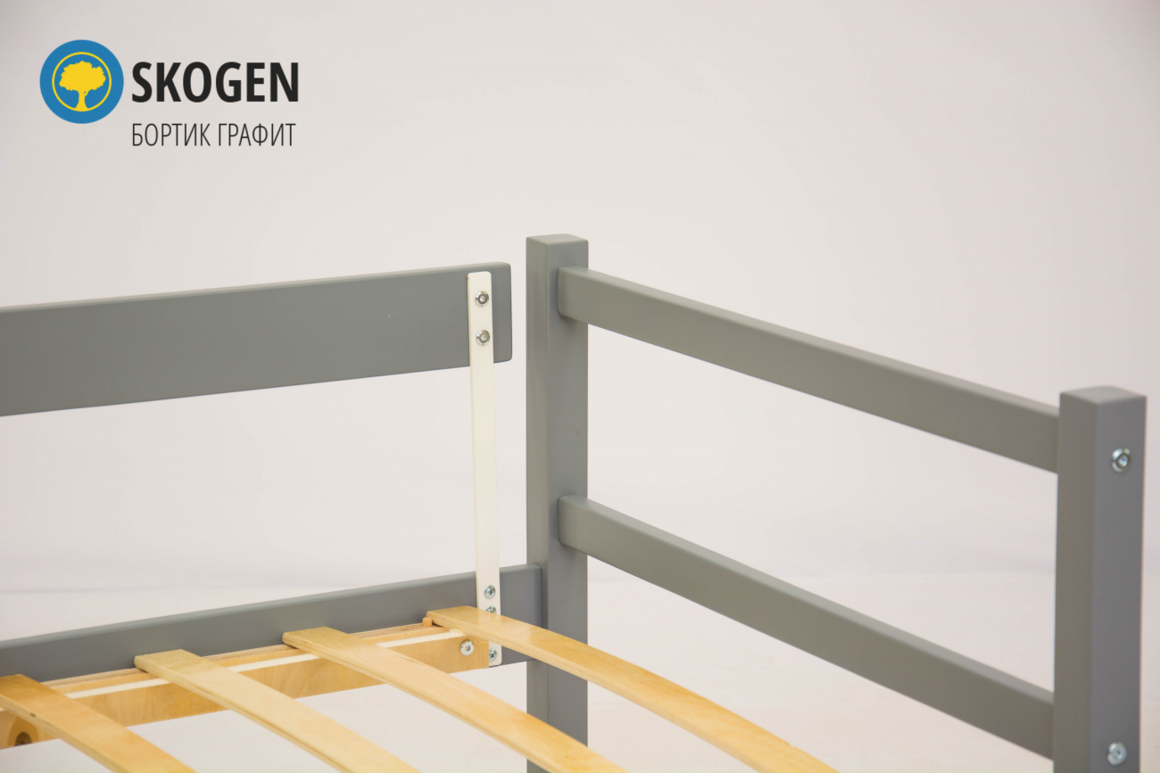 В возрасте четырех-пяти лет дети самостоятельно укладываются спать и встают с кровати. Бортики, установленные на всю длину кровати, им будут мешать. Рекомендуется приобрести модель кроватки с ограждением на 1/3 длины основания. Оно не мешает ребенку проявлять самостоятельность, но и оберегает его от падений во время сна. Характеристики: Размеры: 79x8x2 Материал: МДФ, Металл Покрытие: Эмаль на водной основе Cвойства покрытия: Поверхность покрыта эмалью/лаком на водной основе. Без запаха. Безопасно для детей.