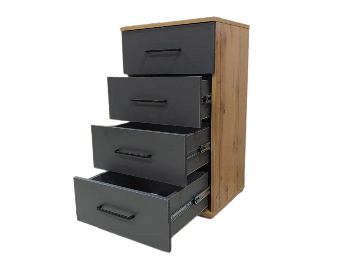 Бруно Комод узкий Дуб Вотан / Серый графит - стильное изделие для хранения любых вещей в современном интерьере.